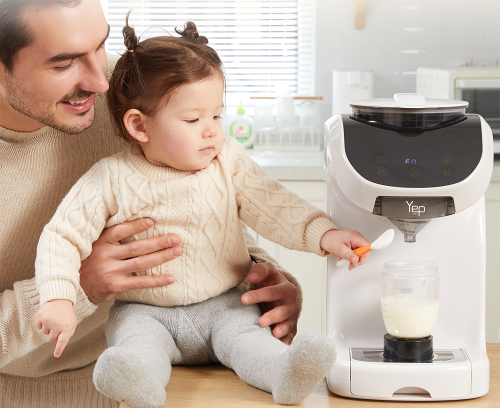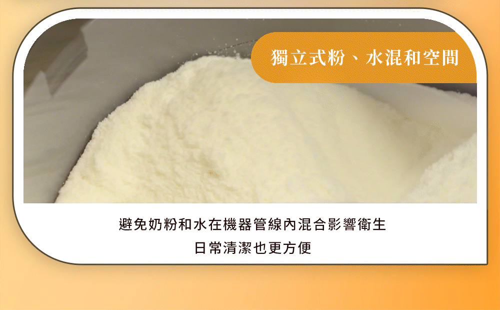 若不是一次性換奶,在寶寶換奶過程中,可使用單獨出水,自己手勺奶粉,省去量水溫、水量的過程。整個換新奶粉後,就可將奶粉倒入粉桶,使用泡奶機泡奶。