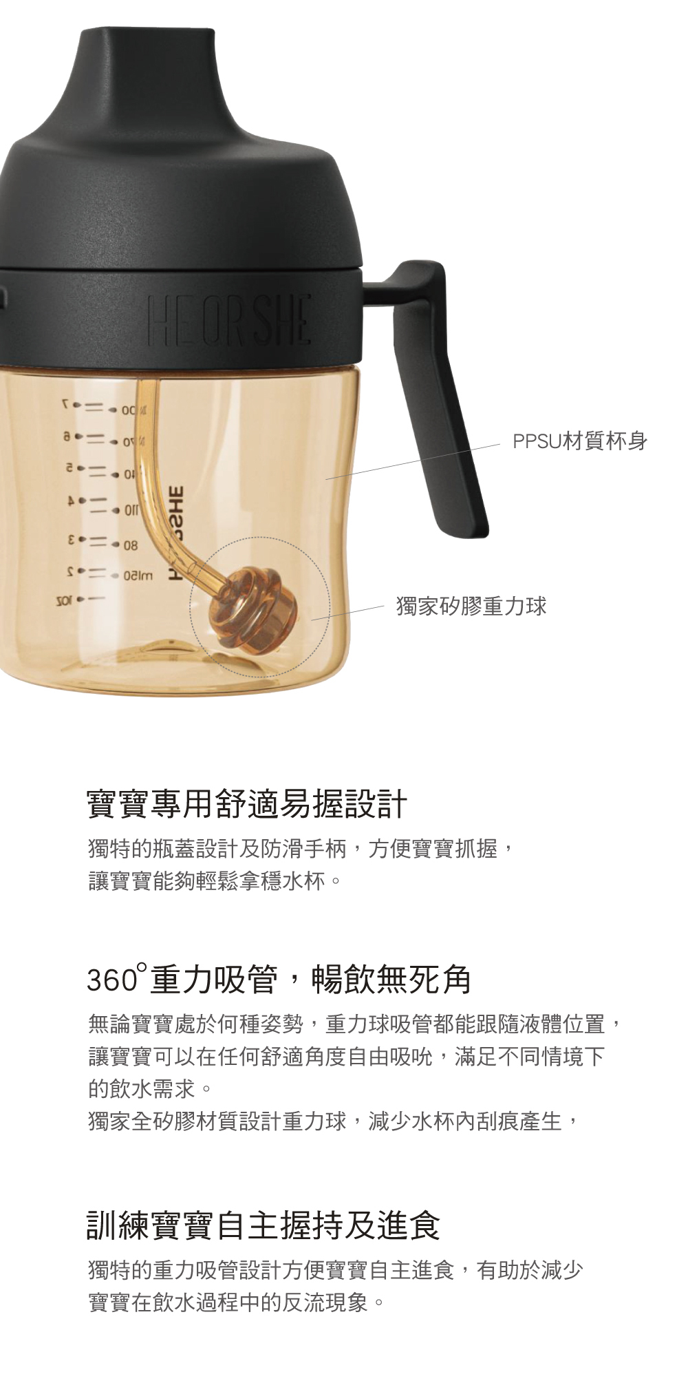 ◎ 牙齒護理吸管學習水杯 210ml商品尺寸:8.8x12.5x16 cm商品材質:矽膠(吸管水嘴、吸管) / PPSU(杯身) / PP(杯蓋、握把) / SUS304(重力球)產品重量:140g奶 嘴:搭配 小翅膀鴨嘴吸頭耐熱溫度: 杯身(-20°C~180°C) / 吸管水嘴、吸管(-20°C~200°C) / 重力球(-20°C~180°C) / 杯蓋、握把(-20°C~100°C) 商品產地:中國