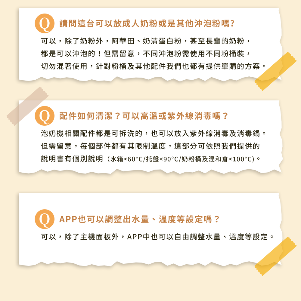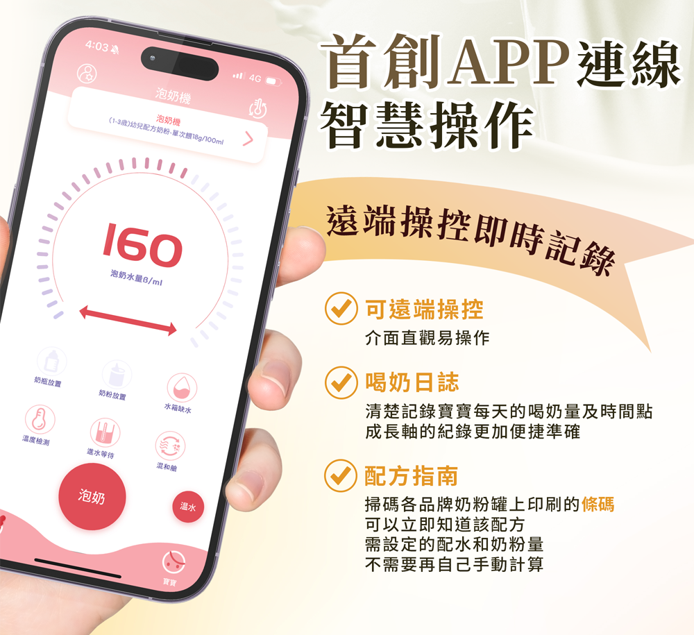 ➋ 配比是按照奶粉罐上提供的資訊做基礎配比,但濃度皆可自由做調整,10g~25g都可以隨時自由更動。