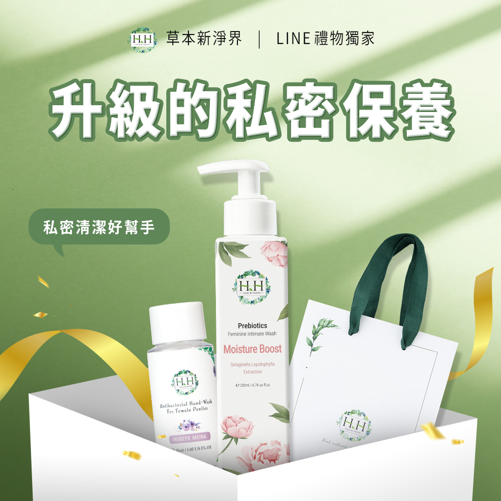 組合內容含:私密益生元潔淨露(200ml)+女性私密衣物抗菌手洗精旅行瓶(30ml)+品牌訂製厚磅紙袋