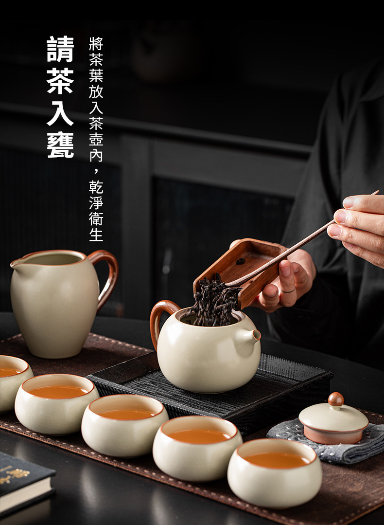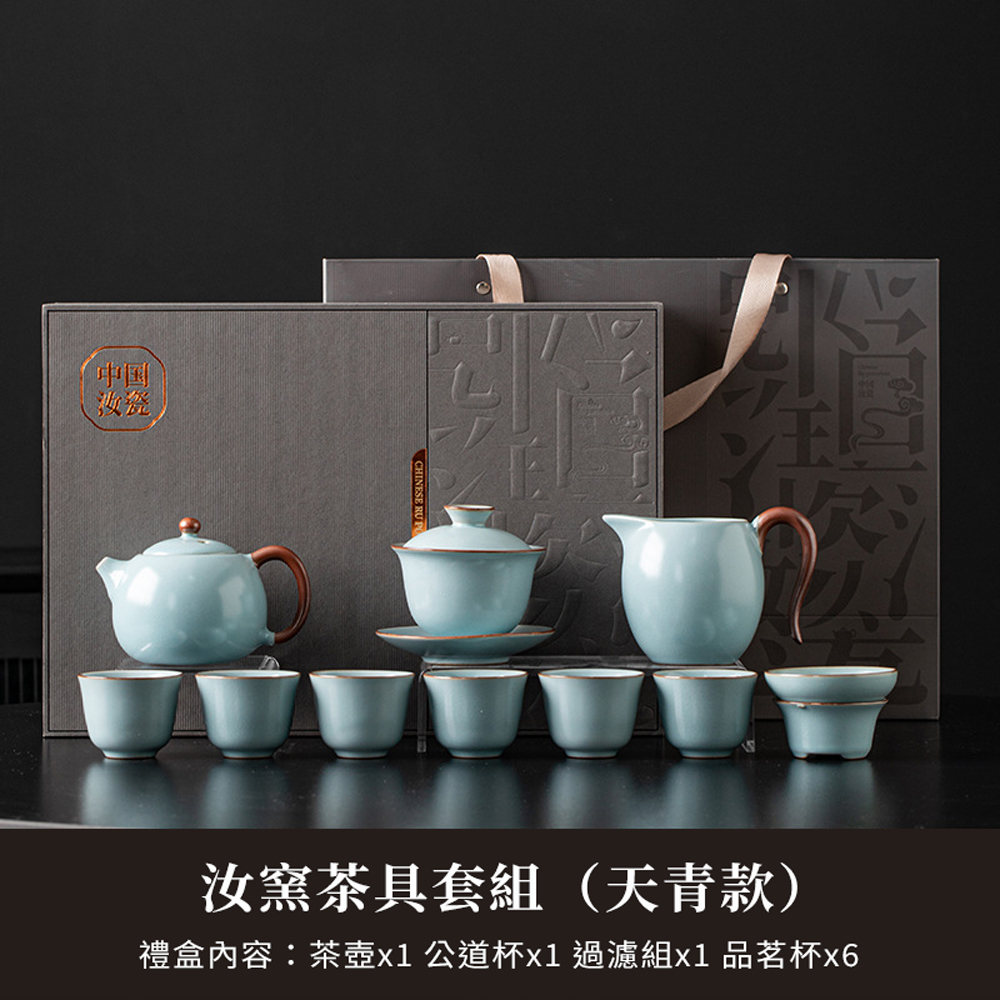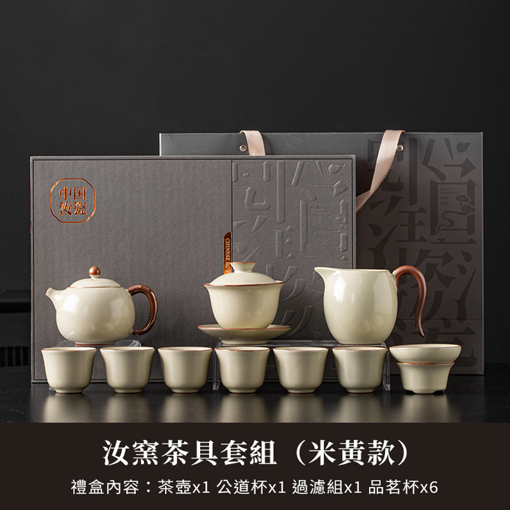 承襲北宋汝瓷千年風華,將溫潤如玉的天青與米黃釉色,重現於現代茶席之上。本套組選用汝窯工藝精製而成,釉色柔潤、開片自然