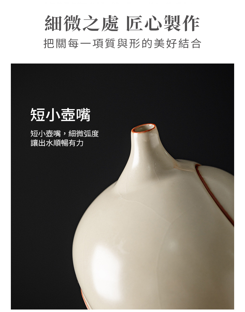 壺嘴圓潤修長,斷水俐落不滴漏,讓每一次出茶都優雅從容。