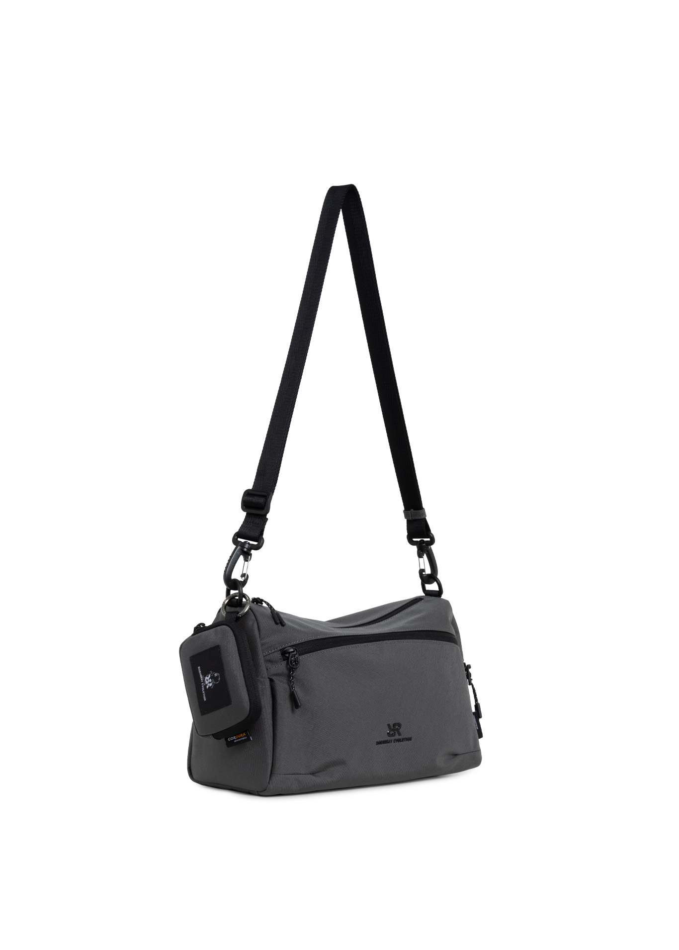 休閒尼龍立體長方包,適合日常外出配戴可放置長夾、6.7吋手機✔️大容量收納空間,可置入外出物品男士支線品牌字母標誌點綴,低調不失質感背帶滑動調整長短,調短背帶還可當簡易肩背包附品牌 IP 小惡魔 Pranky 零錢包掛飾 (11*2*8cm)