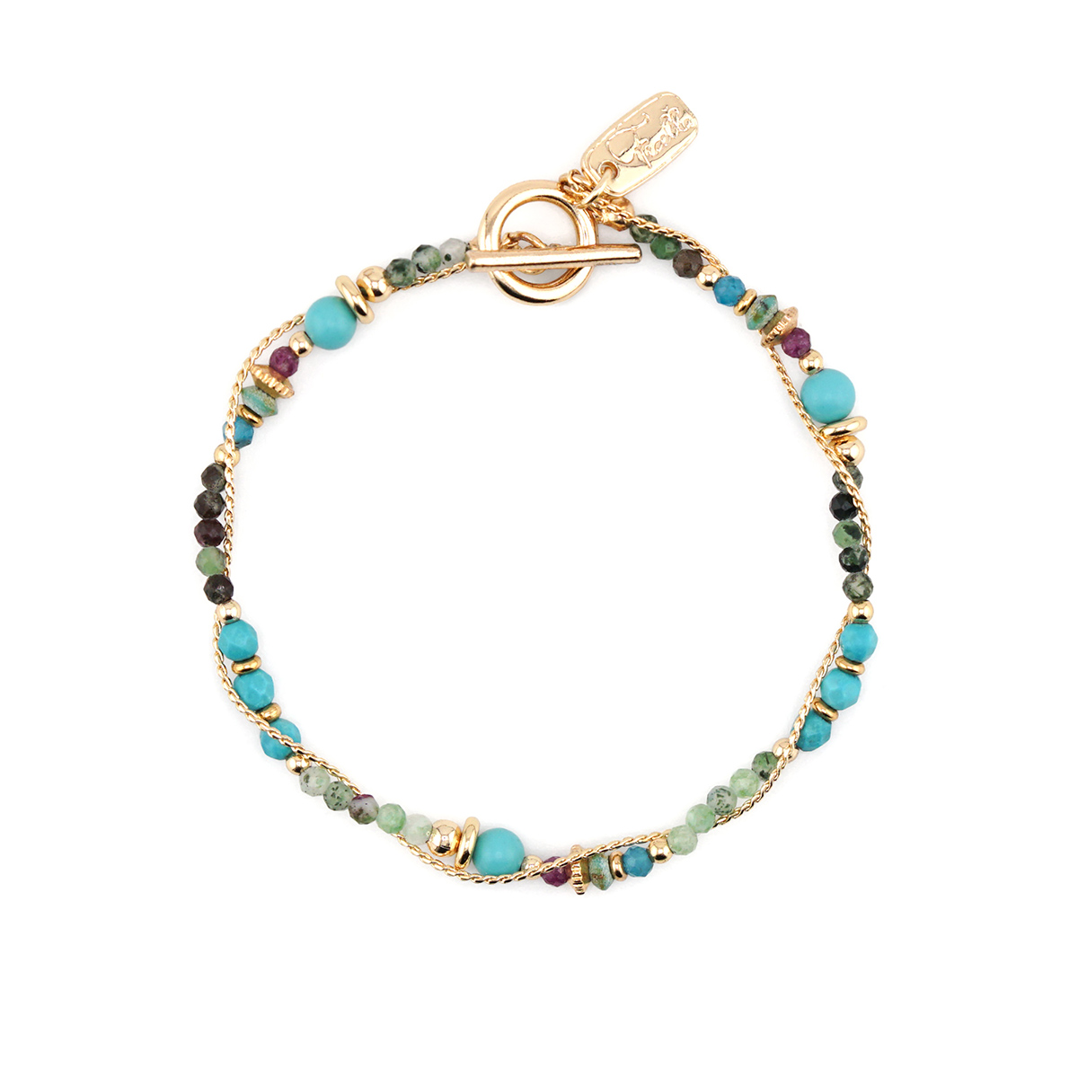 – 商品材質 Product Materials –綠松石、漸層紅綠寶石、藍透輝石、黃銅鍍18K金