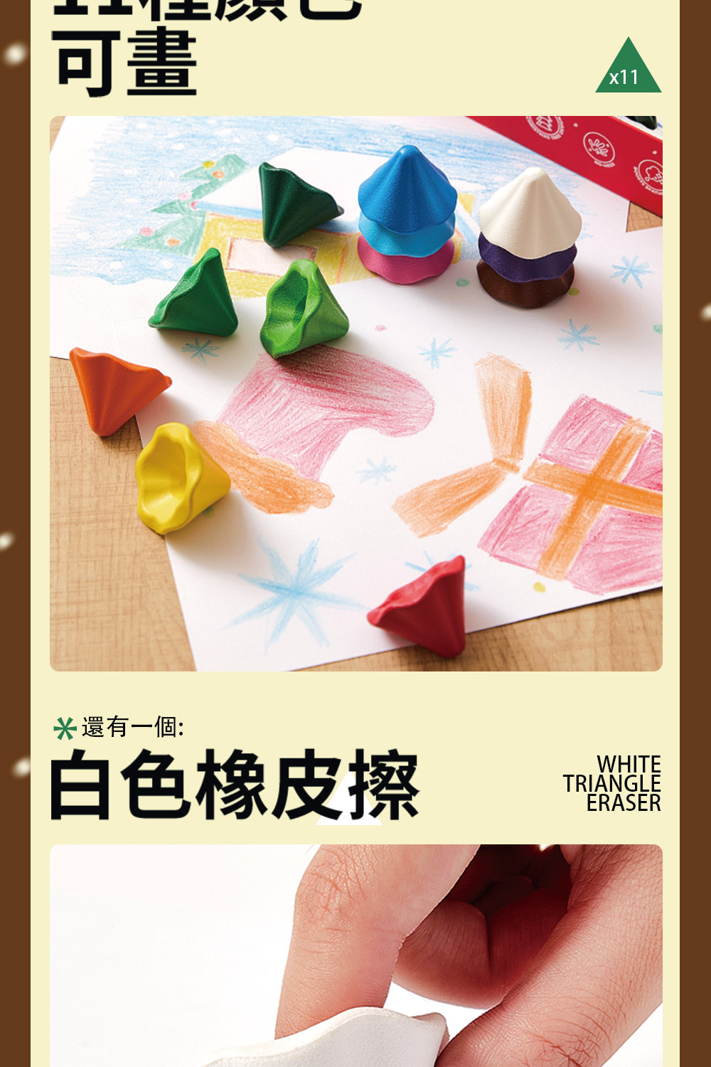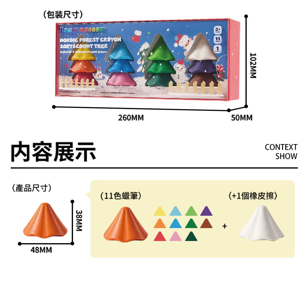 【Flowermonaco 兒童美術用品】英國 Flower monaco聖誕樹蠟筆 含橡皮擦 (11色/兒童蠟筆/幼兒教具/啟蒙玩具) | NearMe | 線上送禮平台『獨家支援 收禮者改選禮物』