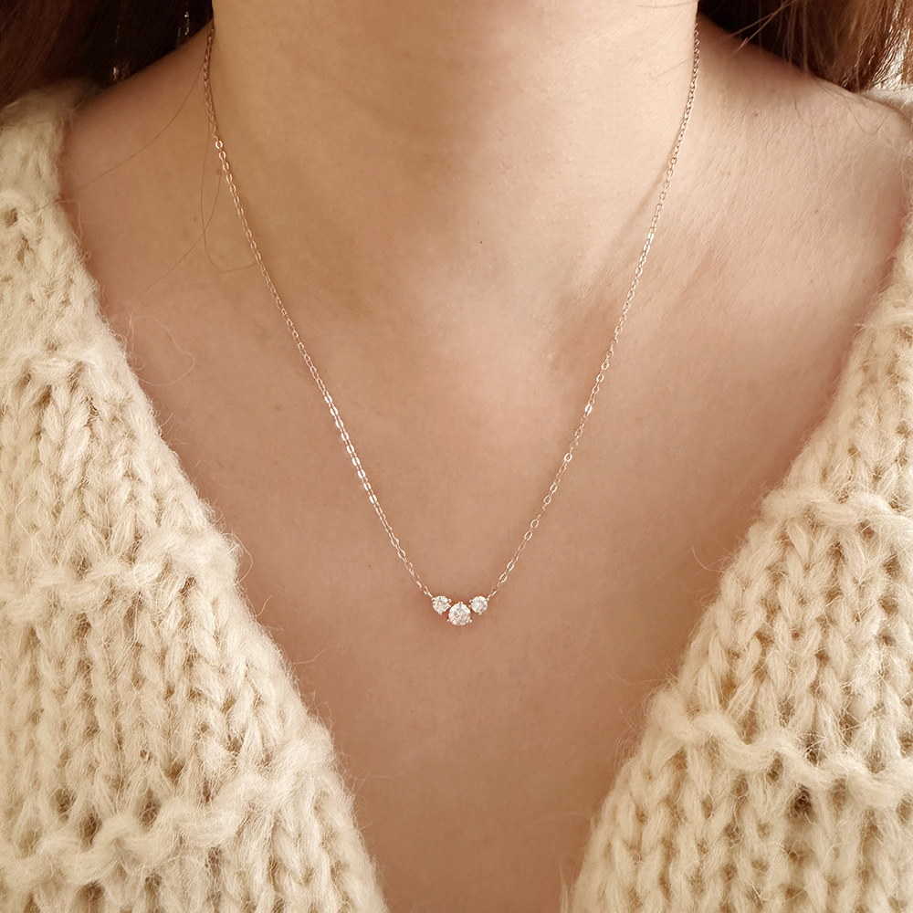 ・名稱:Beulah 925純銀V型三鑽莫桑鑽石鑽飾亮鑽銀色女項鍊 項鏈