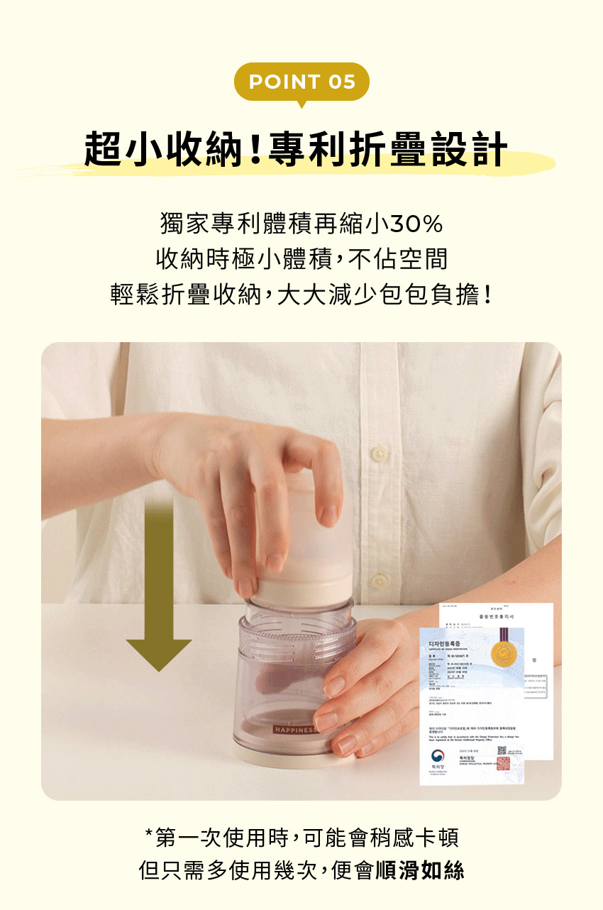 ◆商品介紹顏值最高拋棄式奶瓶,外出只需帶一支奶瓶!送禮既特別又實用。全新專利設計 不怕奶瓶占空間.極致縮小|首創伸縮設計 .環境友善|親環境材質Ecozen .貼心杯蓋|水量精控 .靈活使用|它牌奶嘴高相容.質感雙色|晨曦白、清澄紫.大容量250ml
