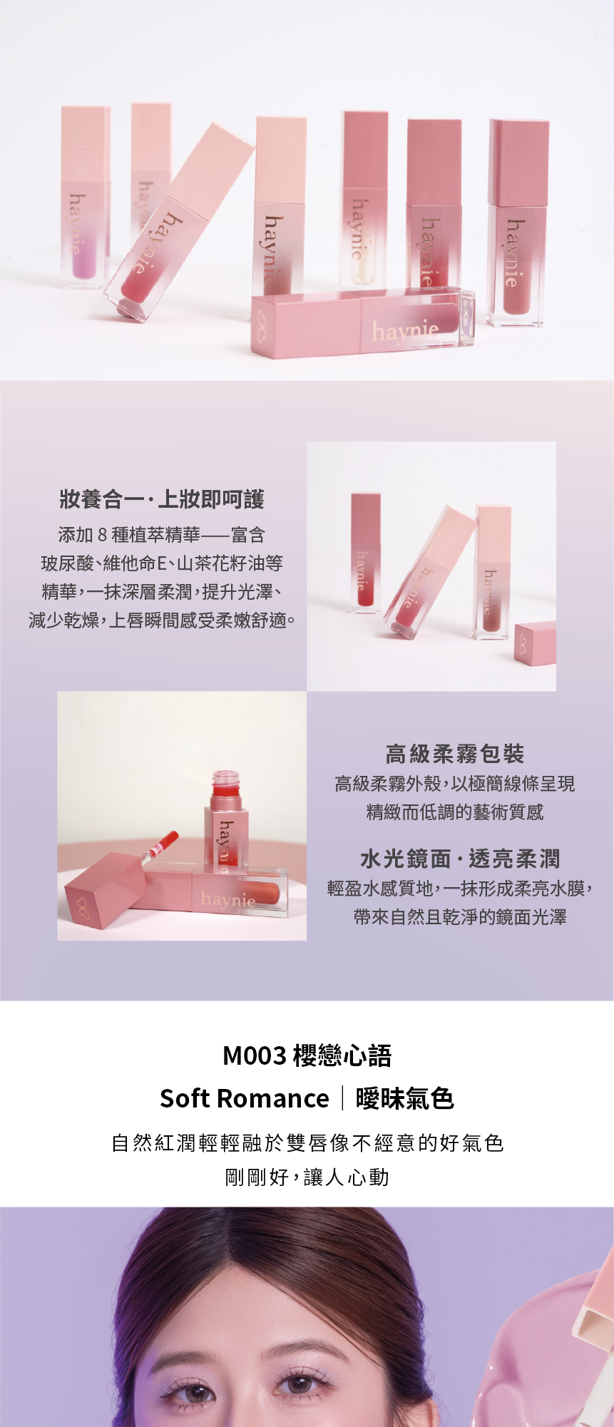 🚚 快速出貨【haynie】情緒唇釉 Moonveil Glow|保養水光唇 #M003櫻戀心語|曖昧氣色|附面膜體驗 | NearMe | 線上送禮平台『獨家支援 收禮者改選禮物』