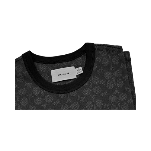 COACH女款短袖上衣,採用純棉製造,COACH經典SIGNATURE圖印聚焦、中性版型穿著舒適。
