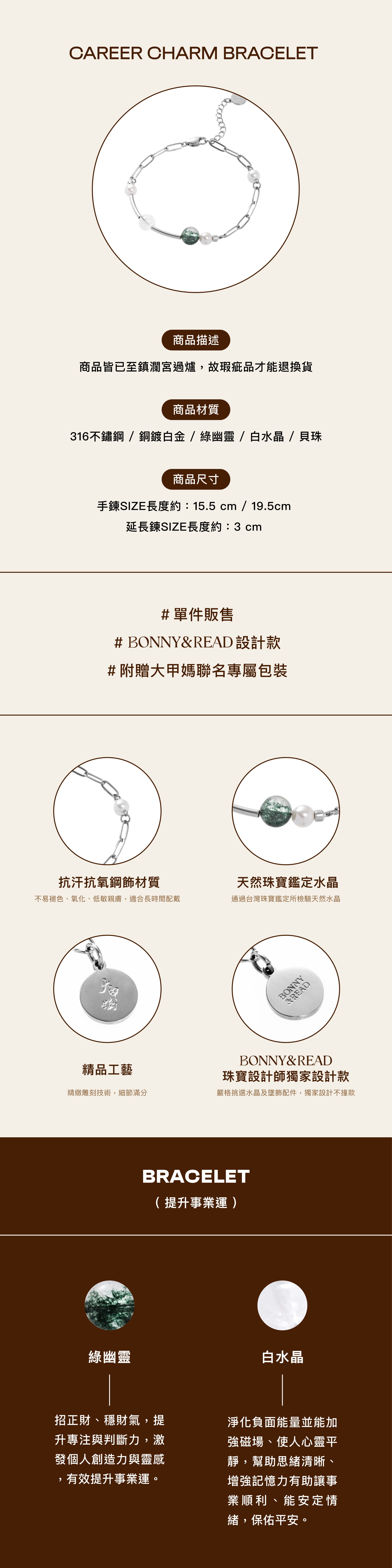 ● 商品材質:316不鏽鋼 / 銅鍍白金 / 綠幽靈 / 白水晶 / 貝珠