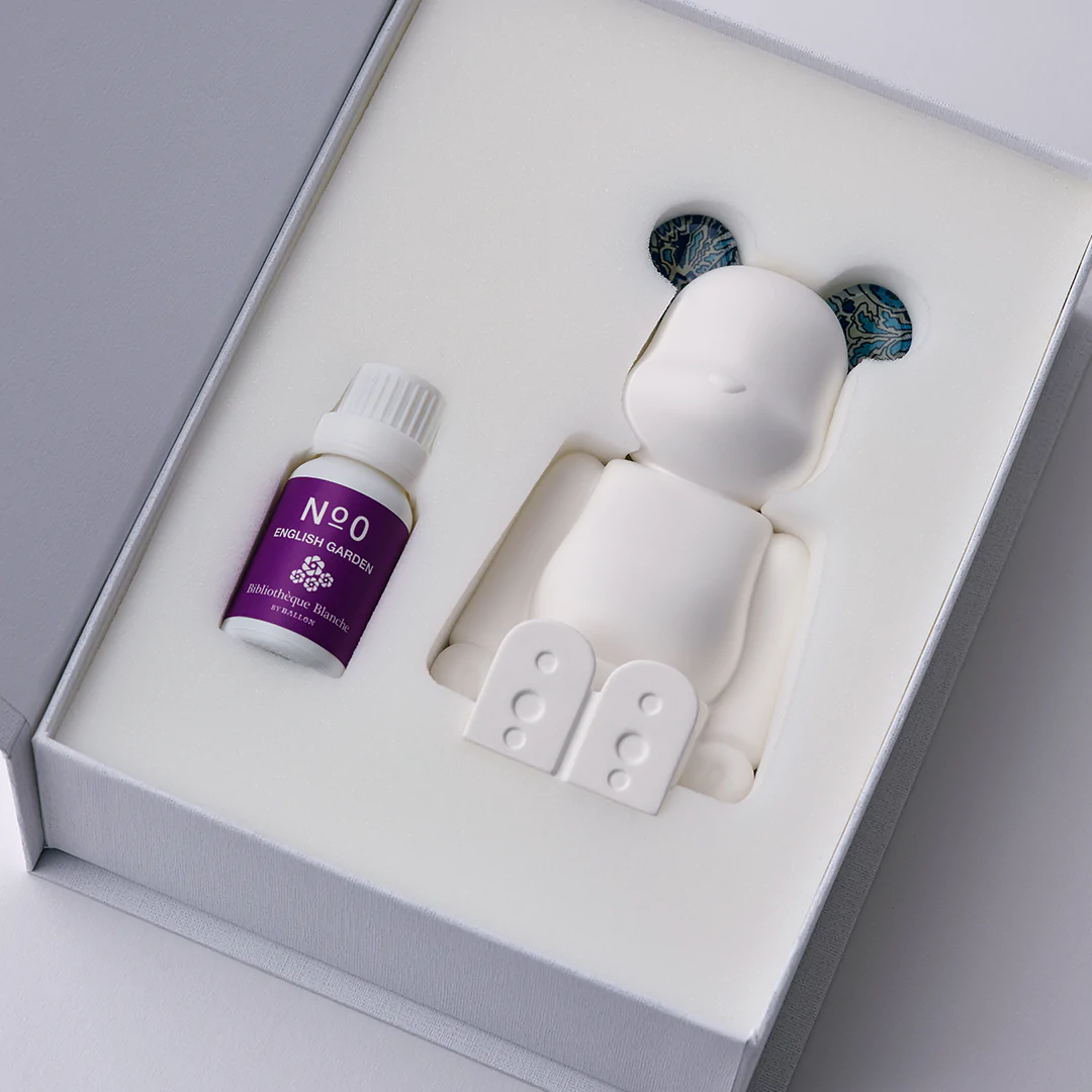 此次更攜手英國百年百貨公司 Liberty London 推出 Be@rbrick 庫柏力克熊精油擴香石,承襲Bibliotheque Blanc 一貫優秀的獨家香調,外型上以潮流時尚的庫柏力克熊結合 Liberty London 標誌性印花,讓它從香味到外觀品味上都能是你空間裡最具個性的存在。