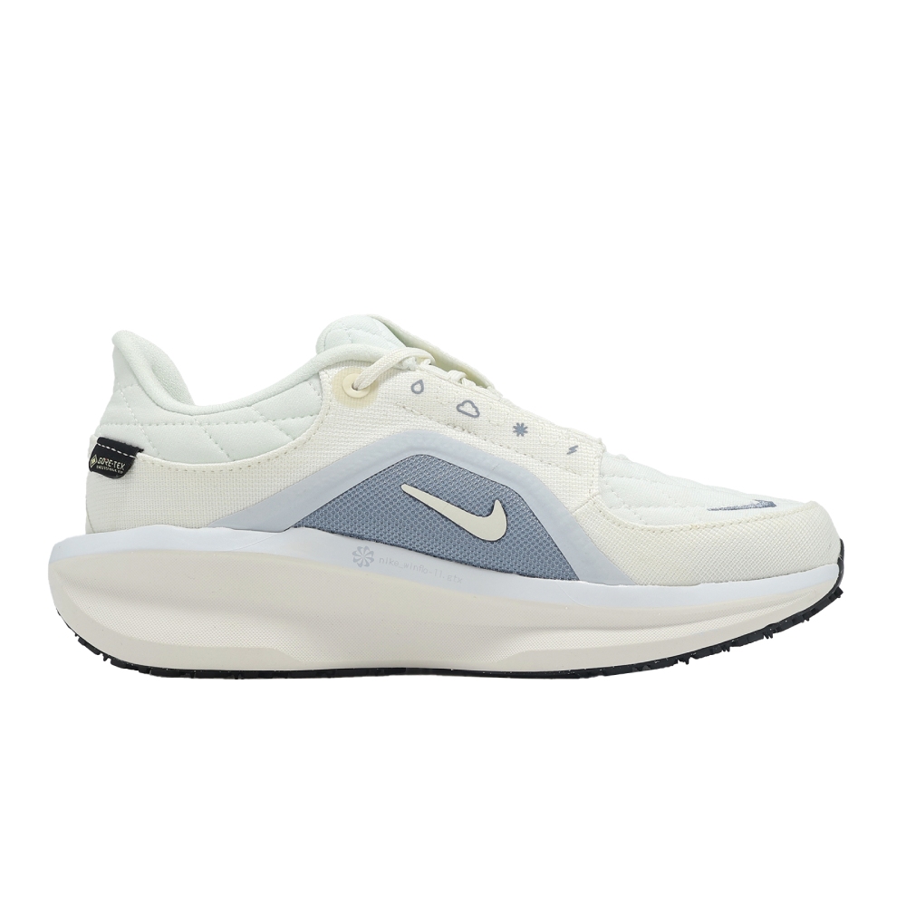 品牌: NIKE型號: FQ1359-103品名: Wmns Air Winflo 11 GTX版型: 腳寬者建議大半號* Air Winflo 11 比前代設計,在前足空間加大,鞋跟加寬,透氣性也有所提升。* 中底搭載全掌式 Nike Air 緩震系統,在觸地瞬間能有效將衝擊力反饋為運動表現,使雙足保有靈敏回彈的足感效果。* 鞋面採用單層機能網布搭載 Gore Tex 防水科技,使雙足隨時保持乾爽舒適腳感。* 延續 Winflo 10 結構與中足束帶,在腳背處提供絕佳的包覆性,使雙足在鞋內不易產生滑動。