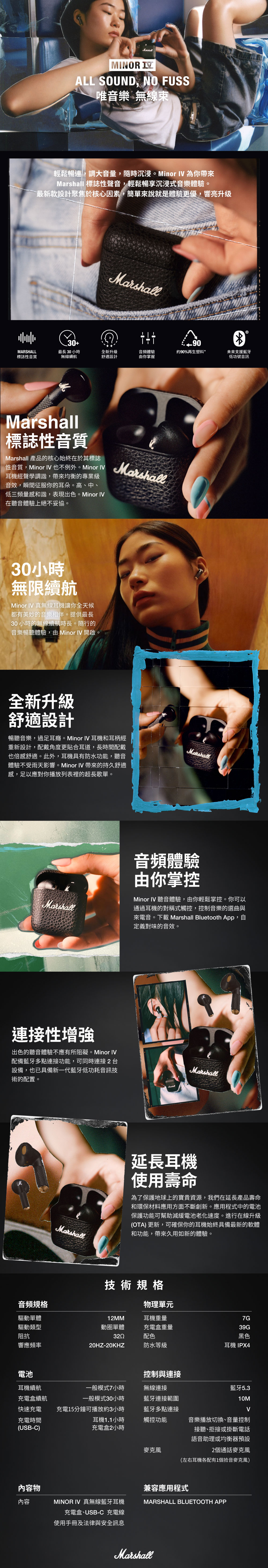 Marshall Minor IV Bluetooth 真無線藍牙耳塞式耳機