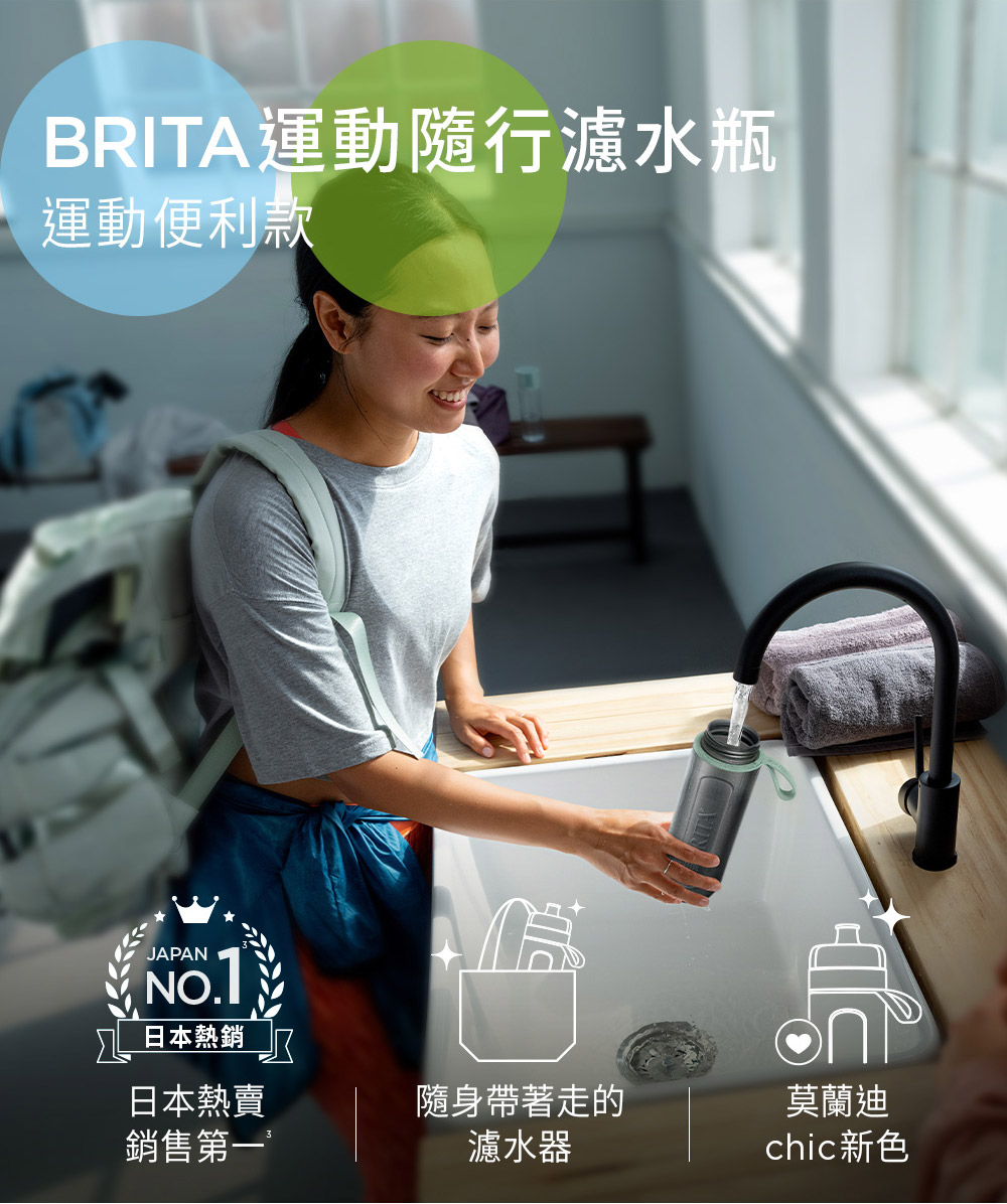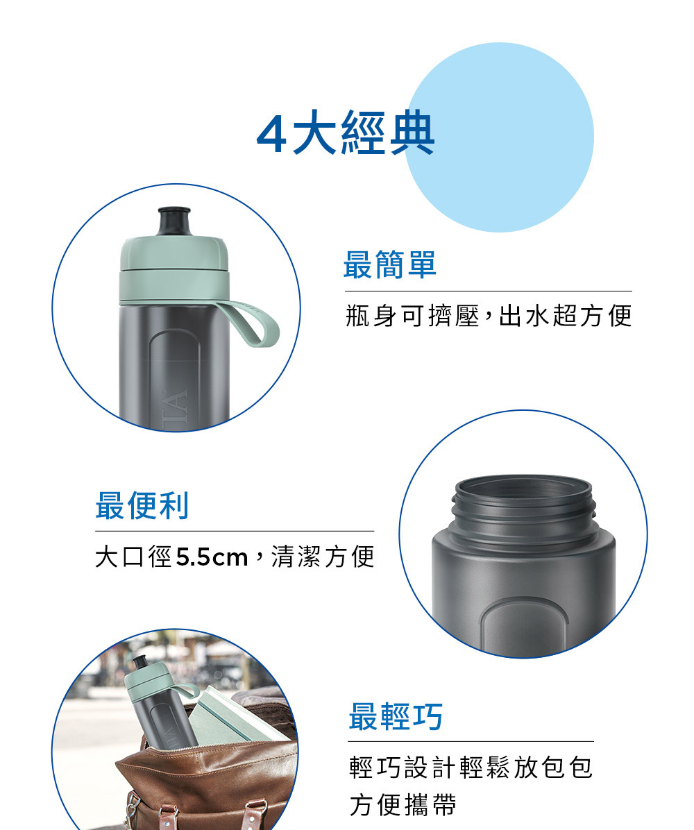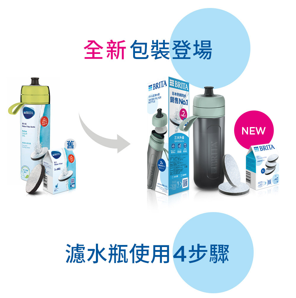 名稱:【BRITA】Fill&Go運動隨行濾水瓶(冰川藍)(共2芯)