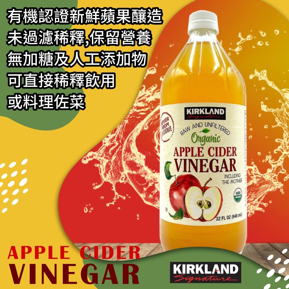 品名:【Kirkland Signature 科克蘭】有機蘋果醋 (946ml / 玻璃罐 )