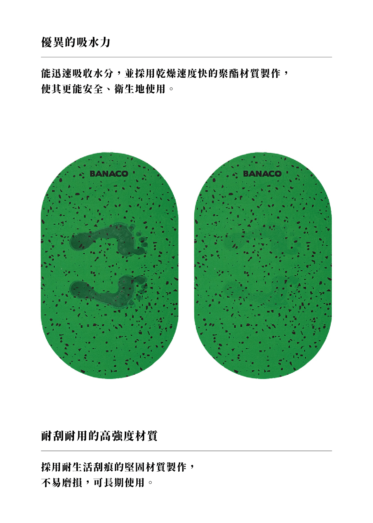 晚安你好BANACO 相信,日常不需要被限制在單調的色調潑墨腳踏墊,以柔和而富層次的色彩散落圖案像把 Mid-Century 的明亮活力,放進任何角落3.5mm 的厚度帶來柔軟支撐觸地的瞬間,是乾爽、穩定,也是安心的觸感耐刮、好清洗、不易滑動在浴室、玄關、廚房它都能成為空間中不張揚卻精準的亮點讓每天的第一步,踩上去就心情變好