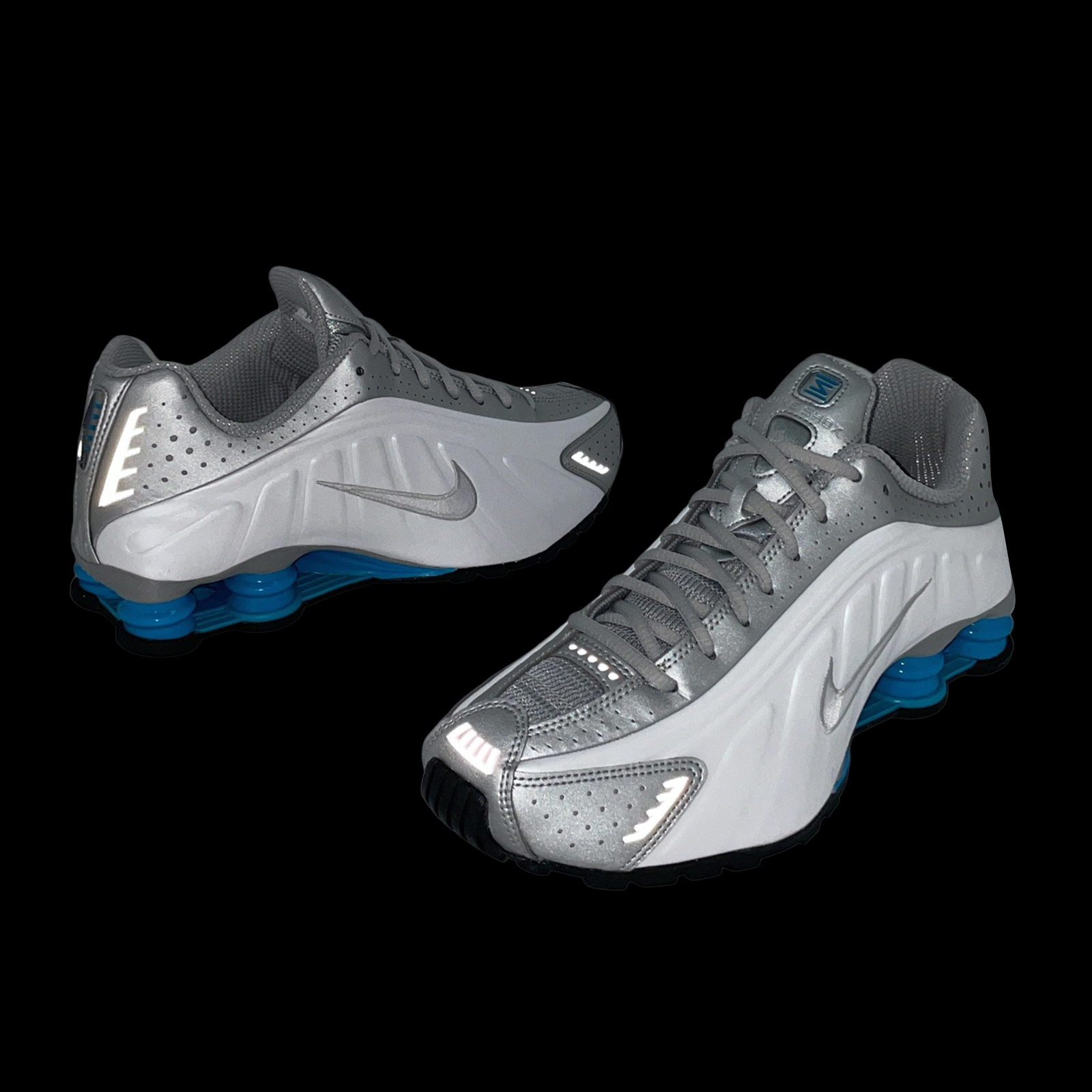* 中底 Shox 技術及後腳跟 TPU 設計,提供腳掌足夠支撐與緩衝效果,並呈現未來感十足造型。