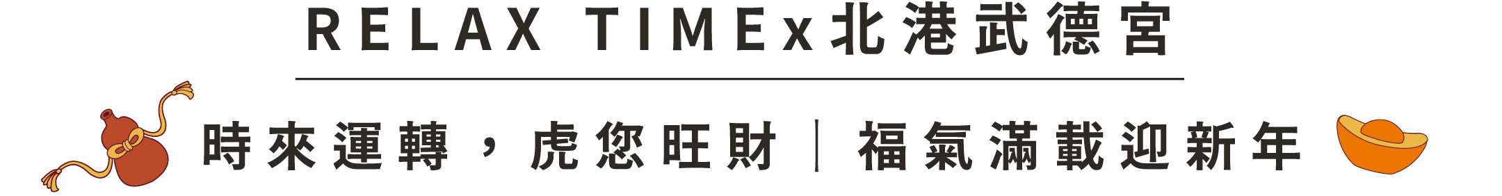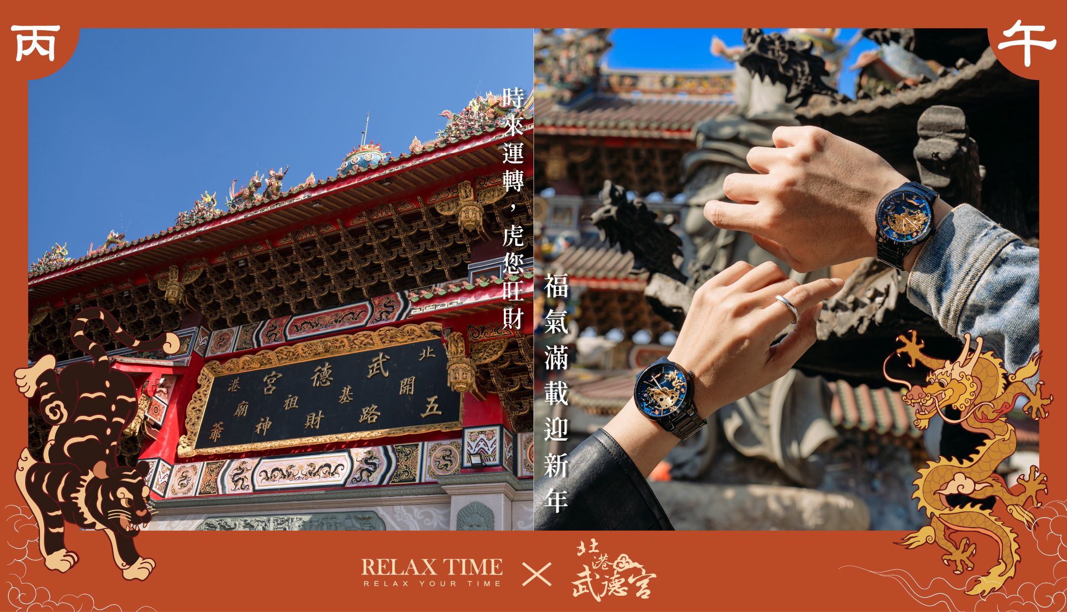 RELAX TIME 攜手臺灣財神開基祖廟-北港武德宮以「時來運轉,虎您旺財|福氣滿載迎新年」為主題打造全系列最潮流的聯名錶款!讓你福氣一整年!-手錶的轉動,象徵著時間的流逝與循環,呼應「時來運轉」的美好寓意。而北港武德宮為全台信眾無數的財神祖廟,香火鼎盛、財氣凝聚的氣場,為這份「運轉」注入了最強大的祝福。