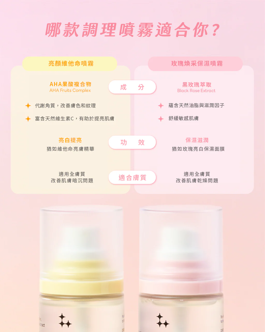 超細緻噴霧搭配玫瑰植萃,一噴補水又帶出自然光澤,外出或上班時都很實用。