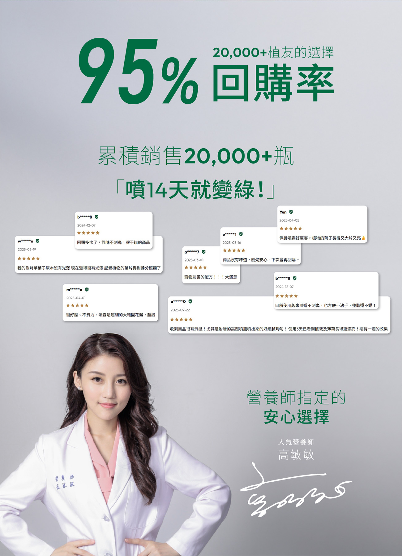 1%植物保養噴霧:成分|大型褐藻萃取物免登記植保字號|植保製字第01097號產品規格|300 ml保存方式|未開封保存期限3年,開封後應儲存於陰涼處製造廠商|永綠生物科技股份有限公司地 址|高雄市前鎮區擴建路1之17號12樓電 話|07-9743776產 地|台灣產 地|台灣