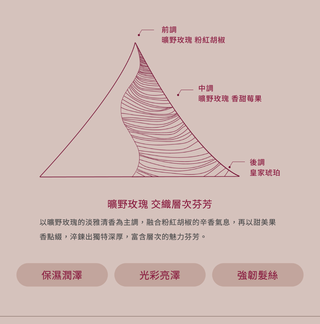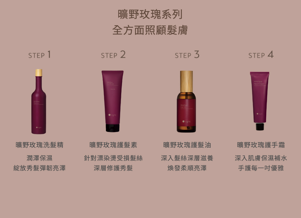 ----------------------------------------------曠野玫瑰洗髮精 250mL(修護漂染燙受損髮質)將堅毅之美轉化為髮絲彈韌能量,匯聚天然植萃成分,抵禦外在環境傷害,強化髮絲防護力,層層修護、潤澤保濕,綻放秀髮彈韌亮澤。用途:潤澤保濕,秀髮綻放彈韌亮澤。用法:取適量於濕髮上,輕柔按摩後沖洗。建議搭配O’right護髮素使用。