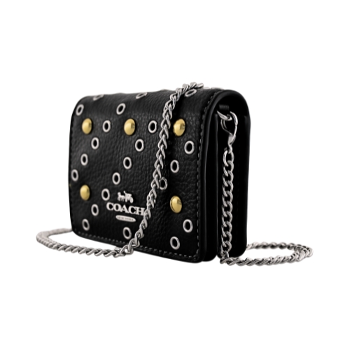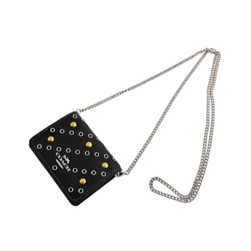 COACH造型、實用兼具零錢包全皮款,採方型釦式翻蓋開合,外部背面一開口夾層、內裡設置主夾層及一開口夾層,活動式金屬鍊帶可頸掛可斜背,便攜實用。(圖片包內耳機卡片僅供包款收納空間參考用,不包含在商品內容)
