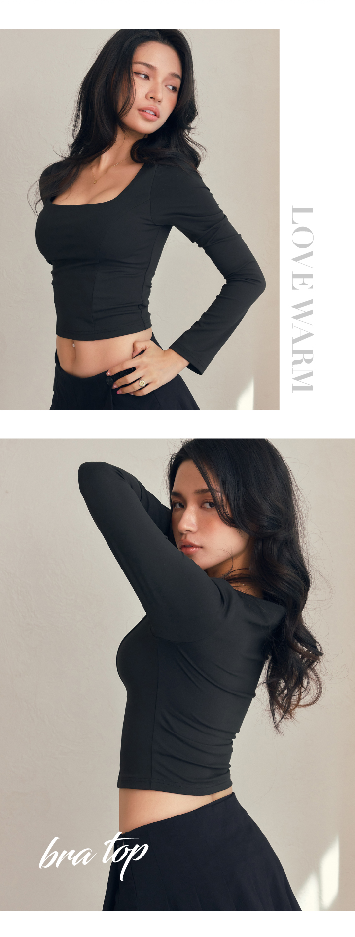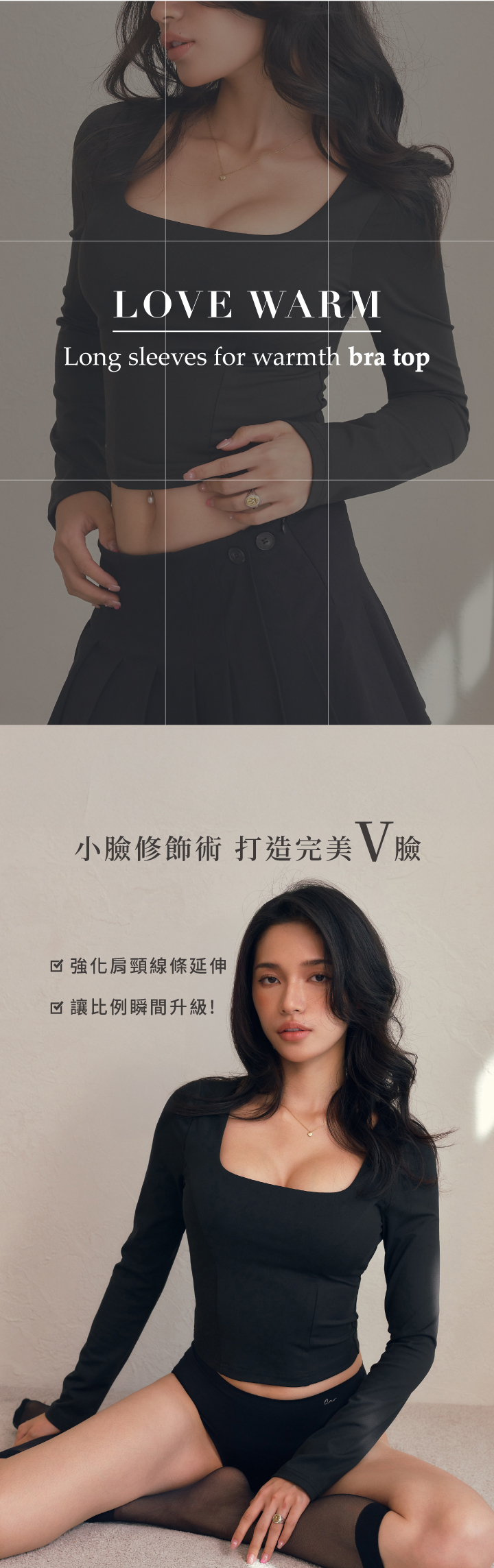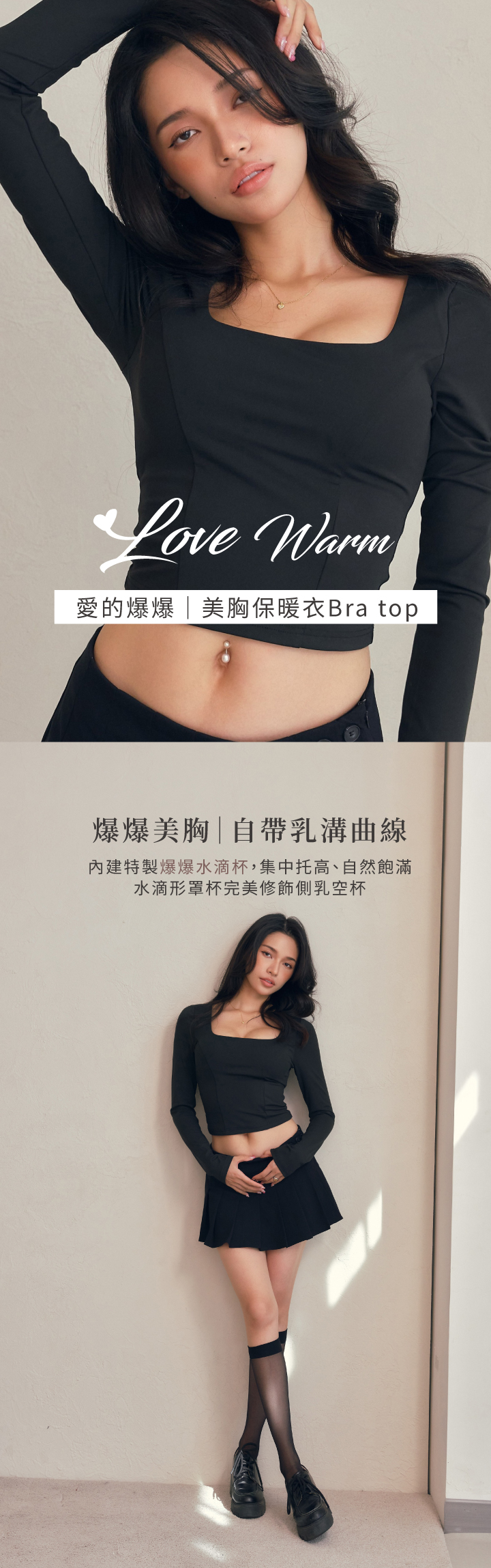 視覺效果-5公斤 超顯瘦爆乳|【愛的爆爆 Love warm】美胸保暖衣bra top(熱可可黑)