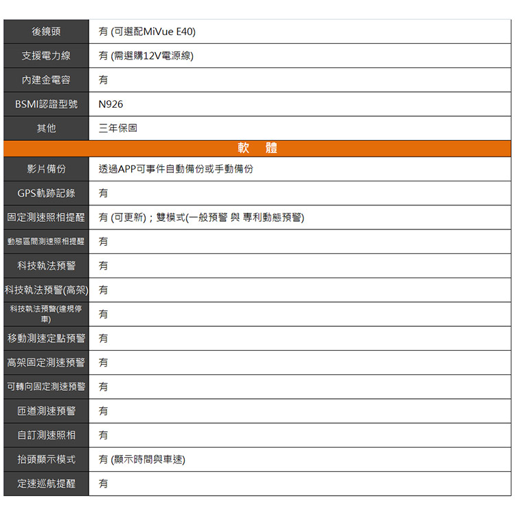 注意: 下列規格若有變更,恕不另行通知。同一產品之規格、功能及其上提供之服務將因銷售地區之不同而異,實際內容請以購買當地機種為準。 (如有問題請洽 Mio 客服專線)