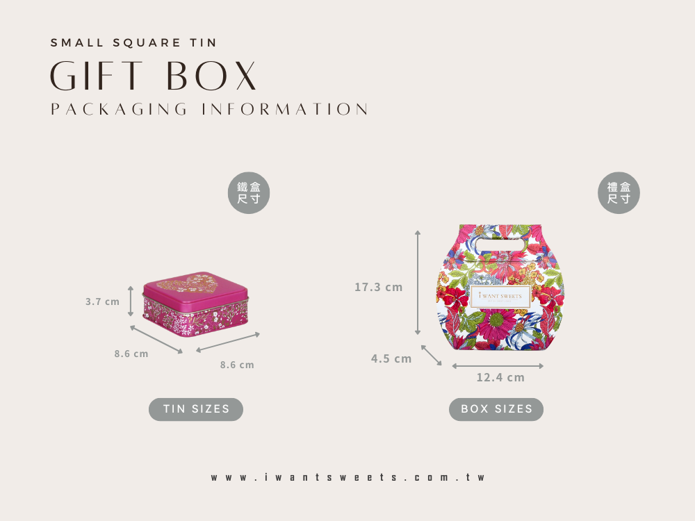 鐵盒尺寸:8.6 x 8.6 x 3.7cm (個)