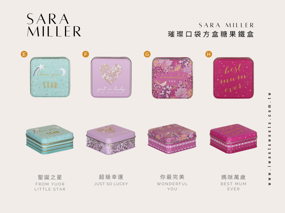 名 稱:Sara Miller 璀璨口袋方盒糖果鐵盒 - 單款入