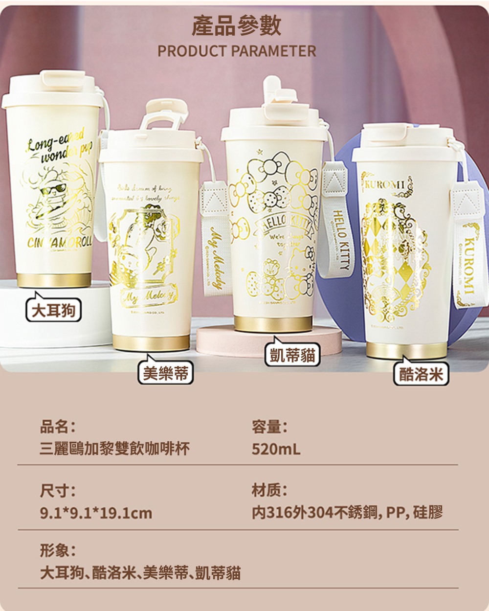 限量代購 酷洛米 白金咖啡保溫杯 520ml