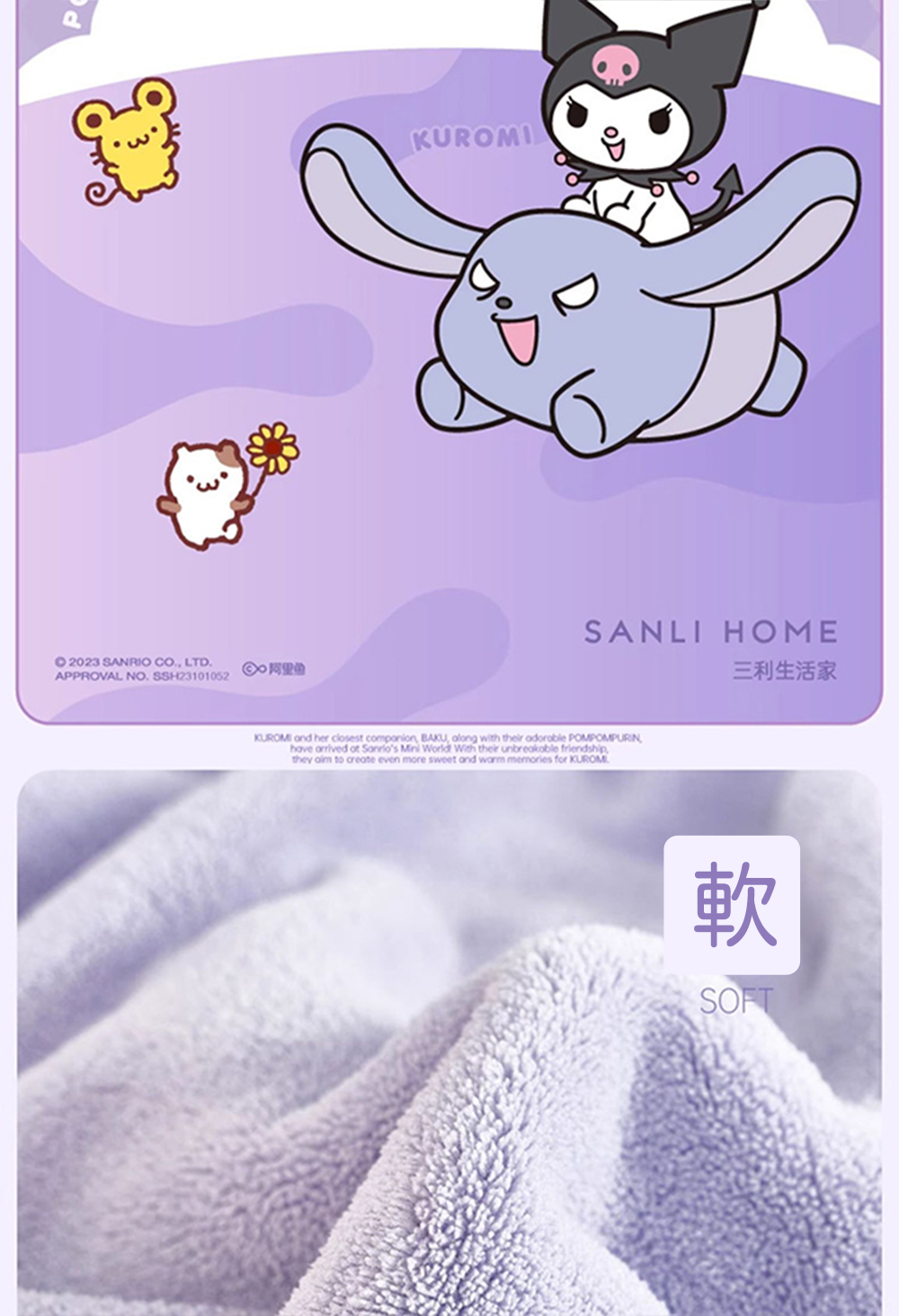 限量代購 酷洛米 珊瑚絨乾髮帽(紫色)