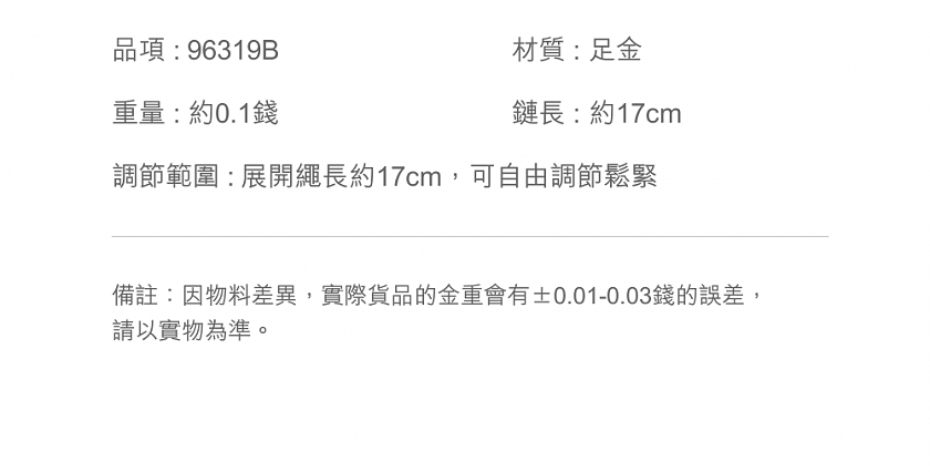 【商家資訊】公司名:英屬維爾京群島商周生生珠寶行股份有限公司台灣分公司統一編號:89390142客服電話:02-2789-6809客服時段:週一~週五10:00~17:00