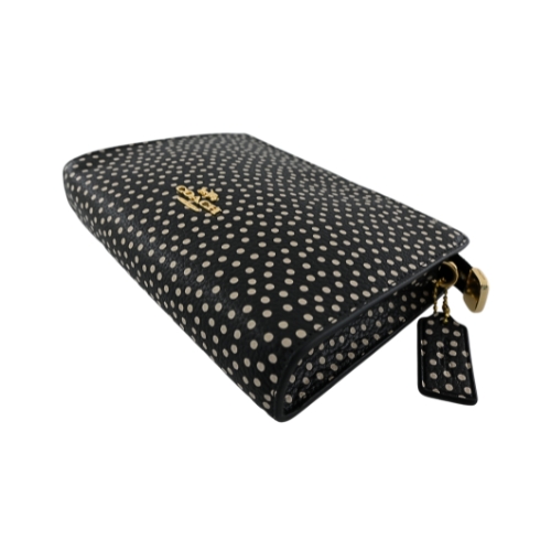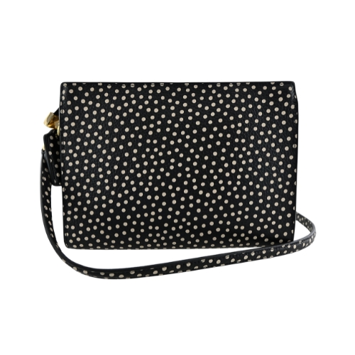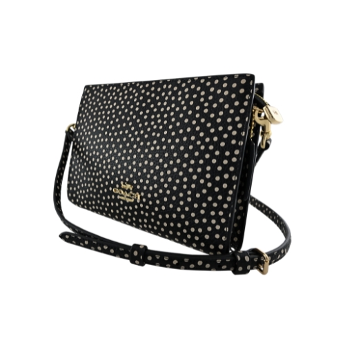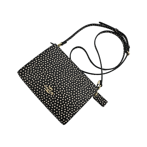 COACH SLIM系列質感斜背包,採波卡圓點印花,內置雙格卡片夾,可收納中短夾、手機、隨身化妝品等必備物,手抓拿赴宴聚會或休閒外出背用皆百搭。(圖片包包內iphone 6手機及卡片僅供包款收納空間參考用,不包含在商品內容)★尺寸:寬19.5CM高14CM側邊寬3.5CM,皮革背帶長117~127CM ★規格:拉鍊開合,內置雙格卡片夾