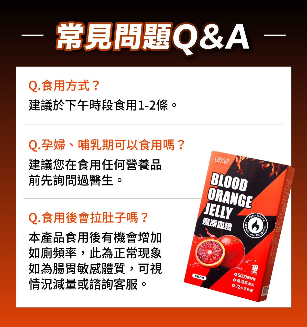 美國專利鉻|擊醣救星《商品規格》品名:【CHOYeR 曲易】魔凍血橙(10包/盒)內容量:15 公克/包,10包/盒成分:魔凍血橙: 水、蔗糖、蘋果濃縮汁、綜合膠體(刺槐豆膠、鹿角菜膠、鼠尾草種子、武靴葉萃取、香料、羊角豆萃取、DL-蘋果酸、檸檬酸鈉、檸檬酸、蔗糖素(甜味劑)、荔枝綠茶多酚、熱封型短雙歧桿菌、酵母粉(含維生素B群)、荔枝籽萃取(荔枝籽萃取、麥芽糊精)、摩洛血橙濃縮粉、複合植物萃取(檸檬馬鞭草、洛神花)、藤黃果萃取、複合乳酸菌(玉米澱粉、嗜酸乳桿菌、羅伊氏乳酸桿菌、植物乳桿菌、綜合蔬果發酵(詳見外盒)、綜合蔬果發酵粉-C(麥芽糊精、鳳梨、番茄、葡萄、梅子、番石榴、檸檬、葡萄柚、甜橙、椪柑、胡瓜、南瓜、絲瓜、冬瓜、苦瓜、紅蘿蔔、地瓜葉、小黃瓜、大白菜、小白菜、高麗菜、青椒、芹菜、西洋芹、青江菜、巴西利、芥藍、豌豆、蘋果、百香果、青花椰菜、馬鈴薯、老薑、地瓜、甜菜根、山藥、香菇、空心菜、紅龍果、茼蒿、菠菜、甜椒、茄子、筊白筍、菜豆、敏豆、紅鳳菜、球莖甘藍、牛蒡、莧菜、萵苣、扁蒲、秋葵、金針菇、酵母菌、A菌 s、保加利亞乳酸桿菌、胚芽乳酸桿菌、嗜熱多醣鏈球菌、嗜酸芽孢乳酸菌、比菲德氏菌、凝結芽孢乳酸菌、LP菌、砂糖)、大麥苗粉、小麥苗粉、綜合蔬果發酵粉-D、洛神花萃取粉、山桑子萃取粉、山楂萃取粉、西洋牡荊萃取粉)、草本植物複方粉末、綜合穀物粉(黑糯米、蕎麥、大麥、黑藜麥、紅藜麥、白藜麥、小麥胚芽、薏仁、玉米))、沙棘果萃取粉(沙棘果萃取物、麥芽糊精)、黑棗萃取粉、芝麻萃取物、荷葉萃取粉、鴻喜菇子實體萃取粉、紅棗萃取粉、銀耳萃取粉、燕麥纖維、玫瑰花瓣萃取物、決明子萃取粉、肉桂萃取粉、百合萃取粉、酸棗仁萃取粉、山竹萃取粉、明日葉、猴頭菇子實體萃取粉、葛根萃取粉、蕁麻根萃取粉、朝鮮薊粉、枸杞萃取粉、洋甘菊萃取物、蒲公英萃取粉、黑大蒜粉、羅漢果萃取粉、玉米鬚萃取粉、南瓜籽萃取粉、紫花苜蓿、桔梗萃取粉、淮山萃取粉、五味子萃取粉、抹茶粉、香檬汁粉、馬告粉、香蜂草萃取粉、玫瑰果萃取粉、桑葉萃取粉、檸檬馬鞭草萃取粉、木鱉果萃取粉、杜松子萃取粉、南非醉茄萃取粉、黃精萃取粉、小竹薑、紫錐菊萃取粉、十字珍珠草萃取粉、川七萃取粉、紅薑黃、刺五加萃取粉、葫蘆巴萃取粉、納豆發酵粉、啤酒花萃取粉、穿心蓮萃取粉、熟地萃取粉、當歸萃取粉、黃耆萃取粉、西洋參萃取粉、天麻萃取粉、柑橘果膠(果膠、葡萄糖)、☆啶甲酸鉻注意事項: 1.過敏原提示:本產品含牛奶、芹菜、大豆、奇異果、麩質、芒果、蕎麥、芝麻、堅果及其製品。 2.本品有使用植物成分,若有顏色變化屬正常現象,請安心食用。 3.特殊疾病患者食用前,請先詢問醫師或營養師。 4.嬰幼兒、孕婦、哺乳婦、老年人及腸胃功能不佳者不宜食用。 5.二歲以下之幼童、糖尿病患者、患有免疫相關疾病者或正在使用免疫相關藥物治療者,在使用前須先諮詢醫療人員。