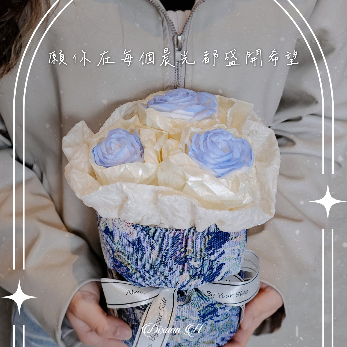 商品介紹名稱:【Dixuan H】永生香皂玫瑰花束|質感輕奢禮物(贈禮物袋)|生日禮物 / 閨蜜送禮 / 情人節禮物尺寸:18x23cm材質:布藝+香皂花