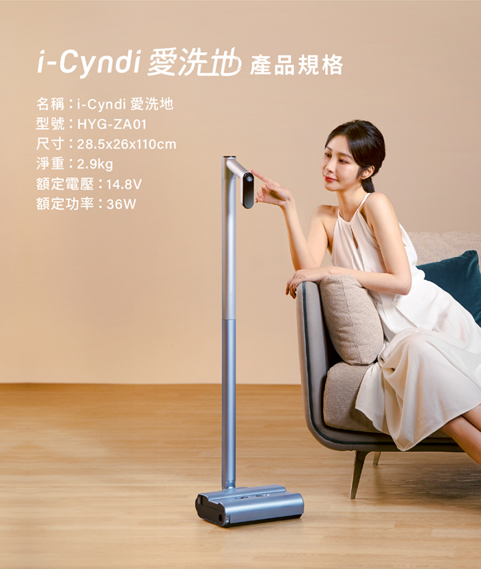 i-Cyndi愛洗地洗地機 HYG-ZA01 (拖地機/超輕2.9kg/IPX6防水/可平躺)