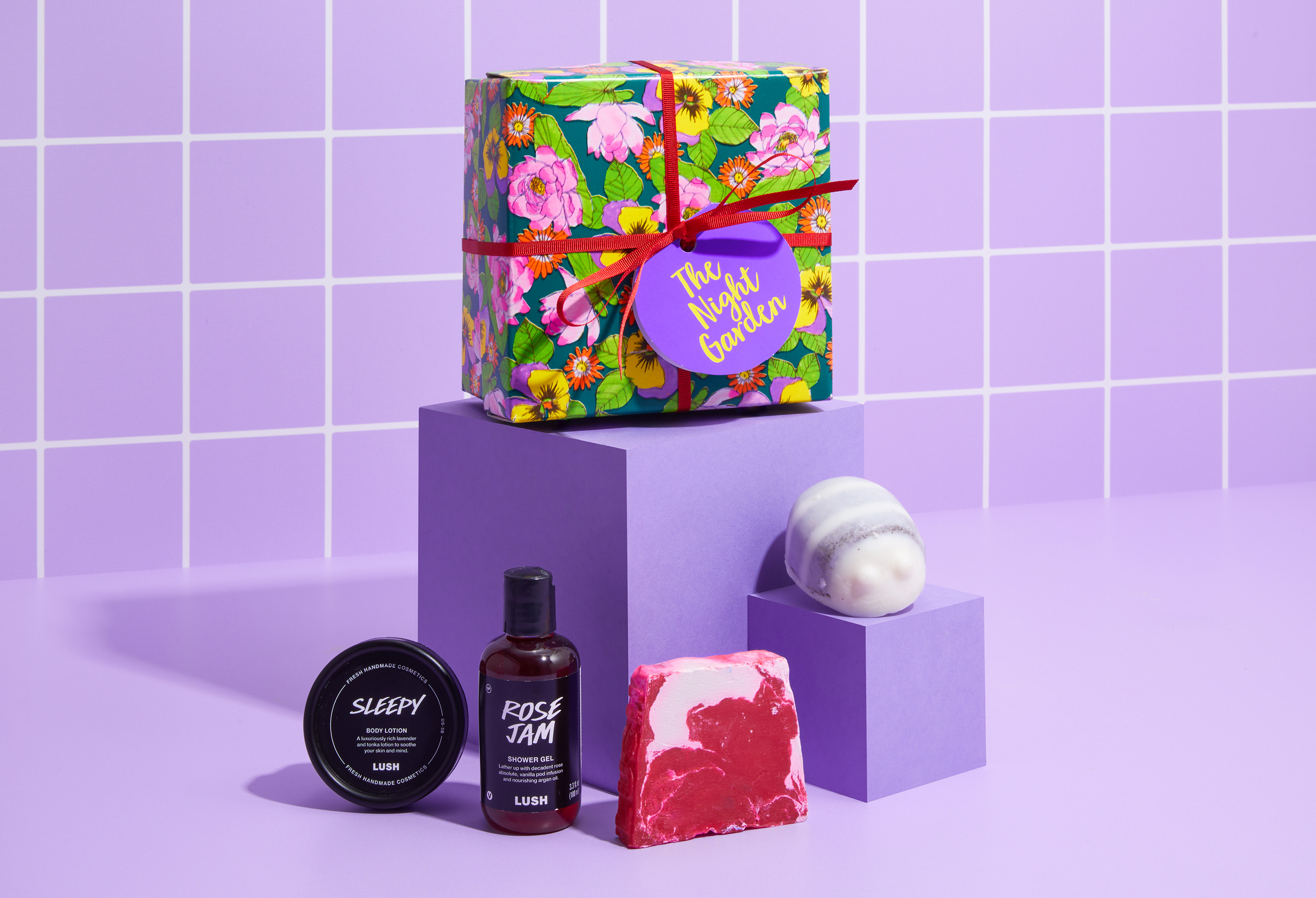 這款禮盒由 Lush 禮盒設計師 Kate Ellistone 設計,靈感來自「一個夢幻夜晚的花園,湖面靜謐閃耀,蓮花點點漂浮」,如夢似幻,優雅動人!