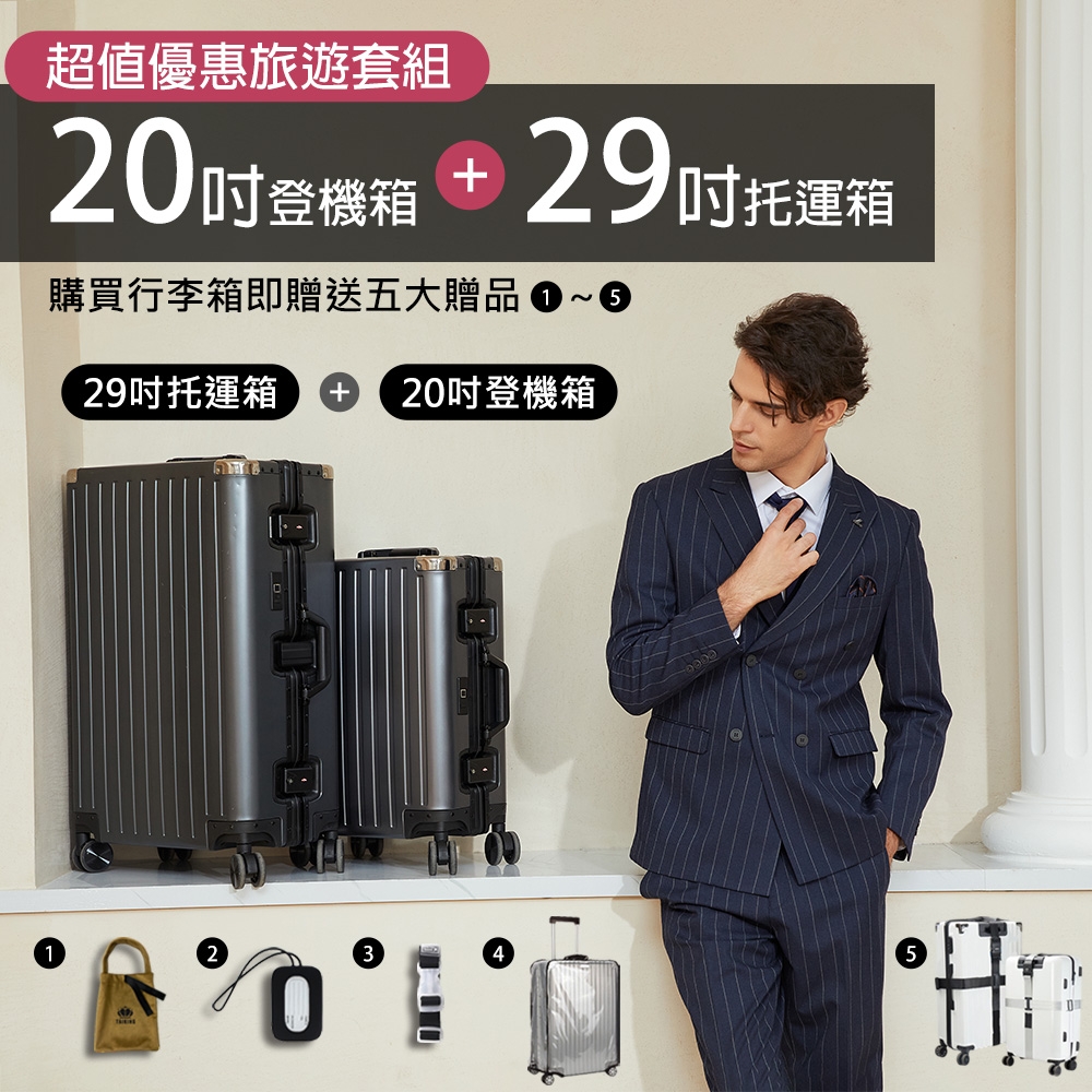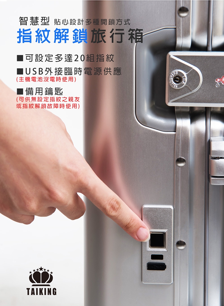 【買2送10超值組合】20吋+29吋 德國TAIKING鈦金屬包角/鋁鎂合金/智能指紋解鎖行李箱/旅行箱