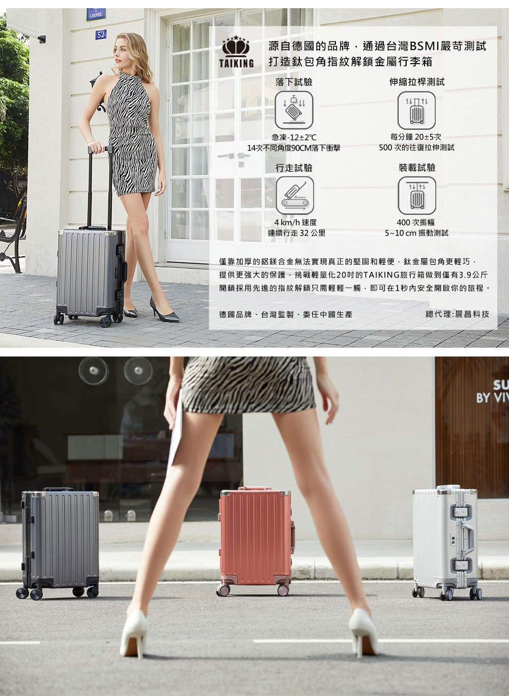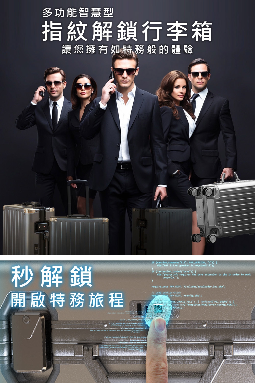【買1送5】29吋 TAIKING鈦金屬包角/鋁鎂合金/智能指紋解鎖行李箱/旅行箱 灰色系