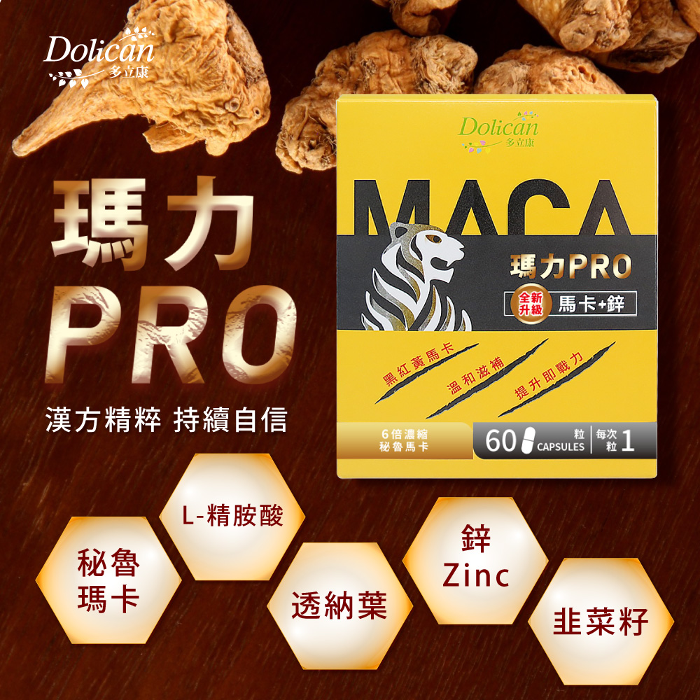 名稱:多立康-瑪卡 PRO 馬卡+鋅膠囊-60粒/盒