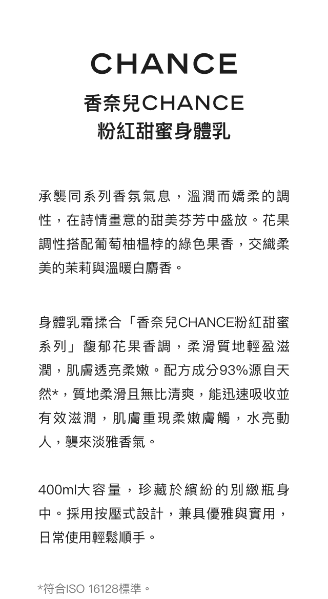 【CHANEL】香奈兒CHANCE粉紅甜蜜身體乳400ml | NearMe | 線上送禮平台『獨家支援 收禮者改選禮物』