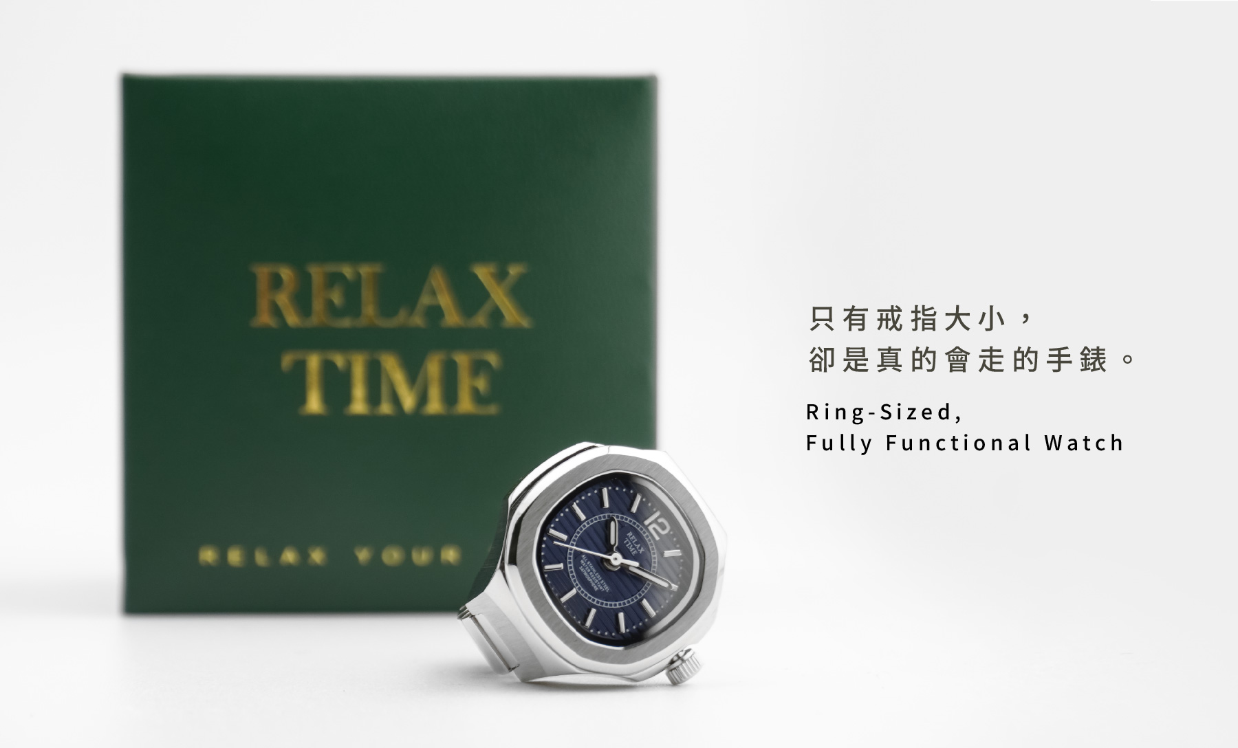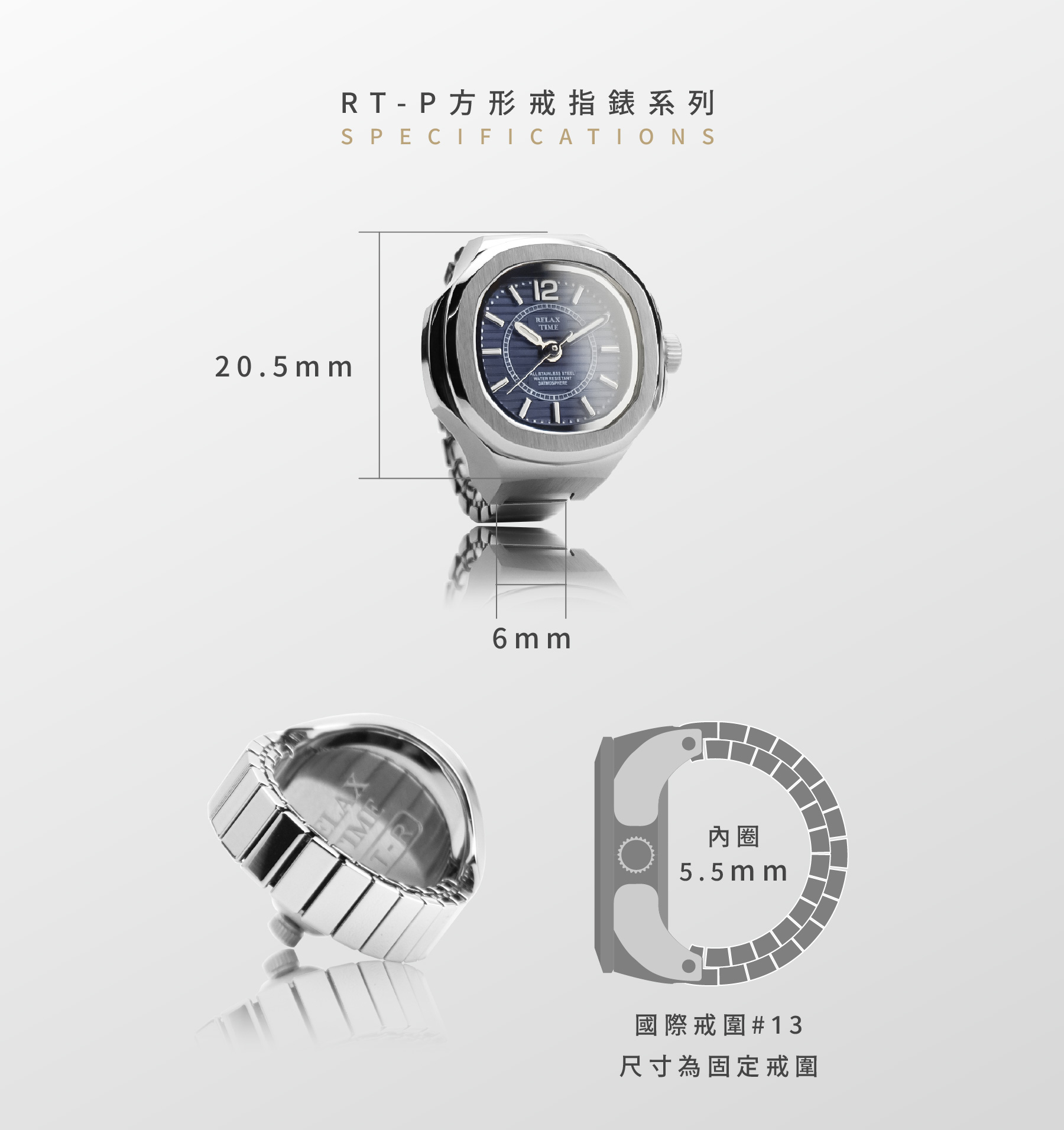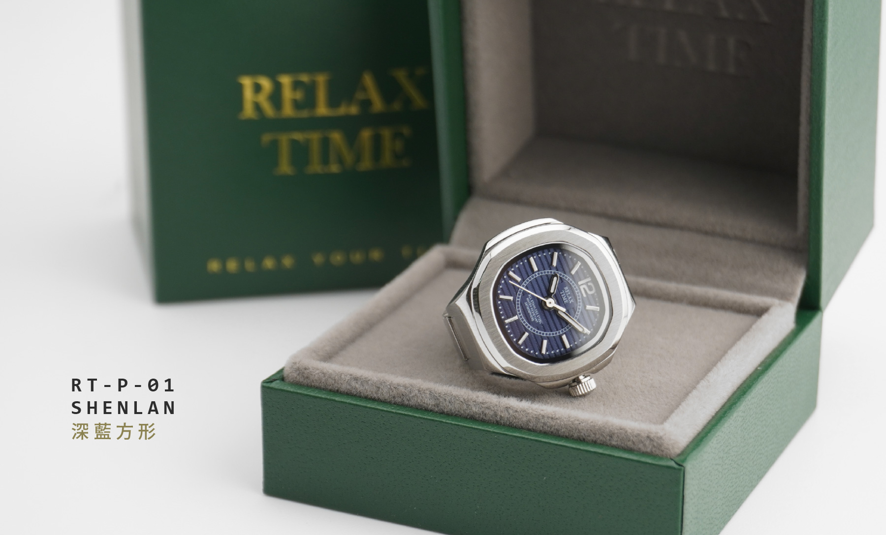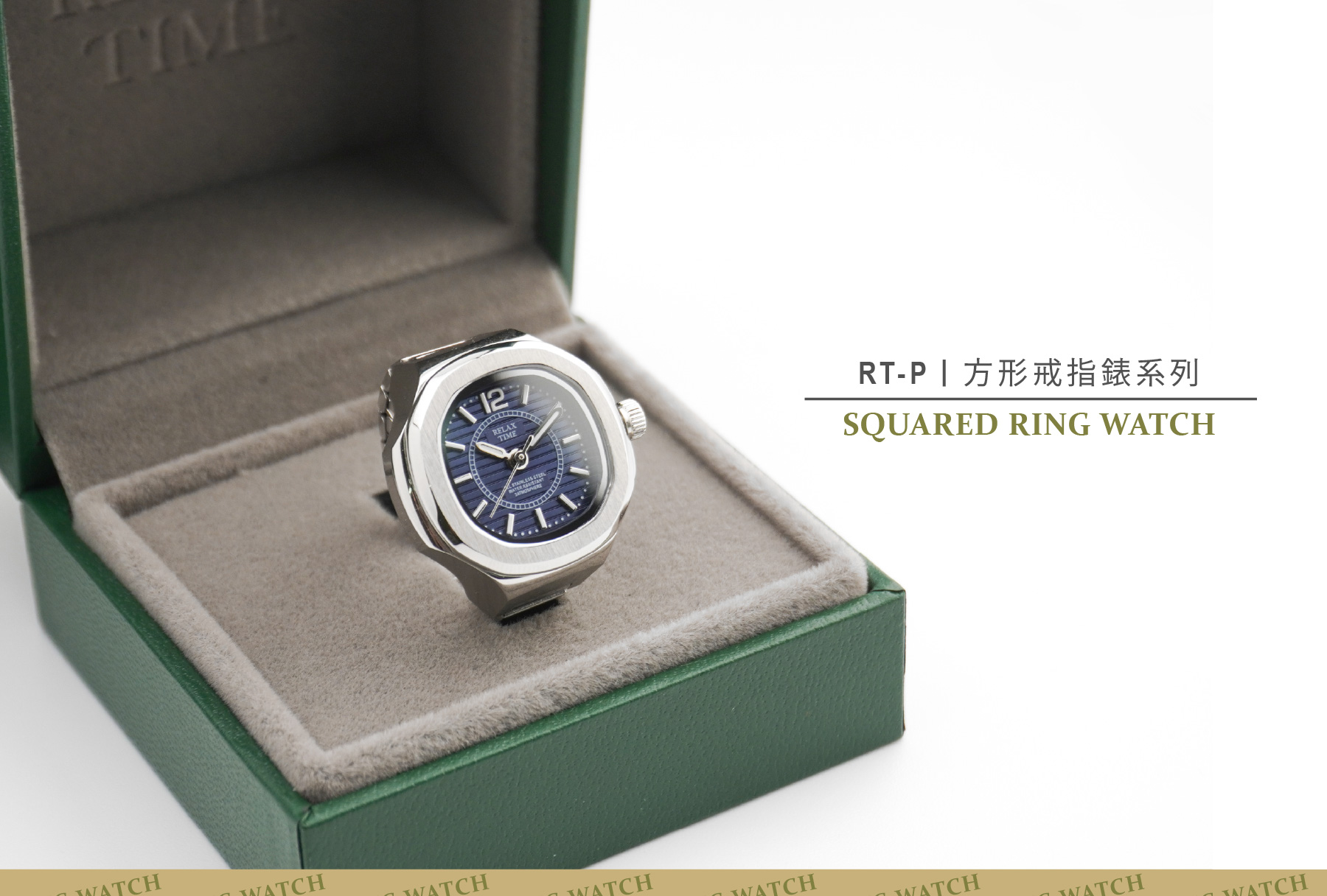 此為預購商品-RELAX TIME 方形戒指錶-深藍方形 (RT-P-01)