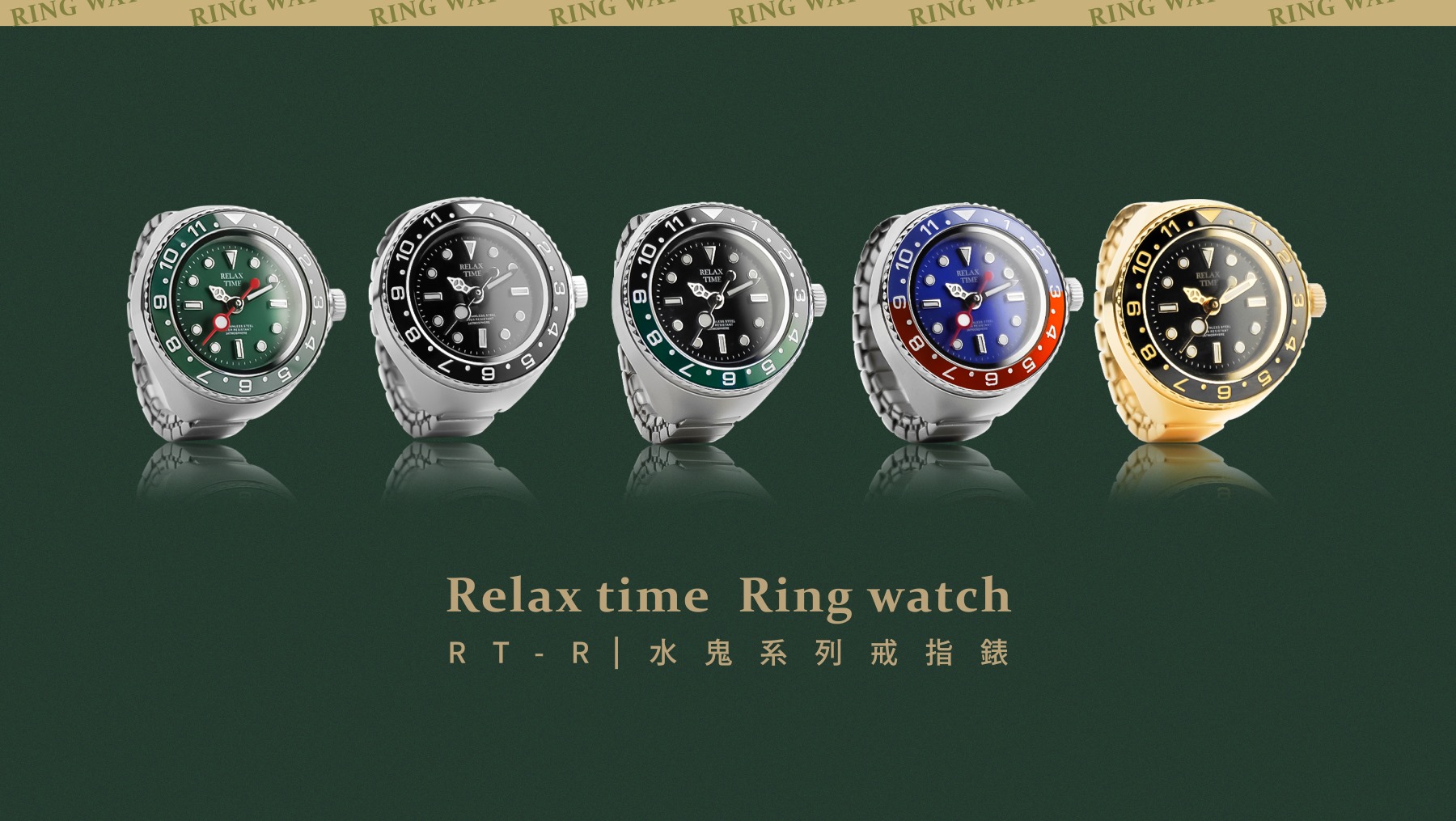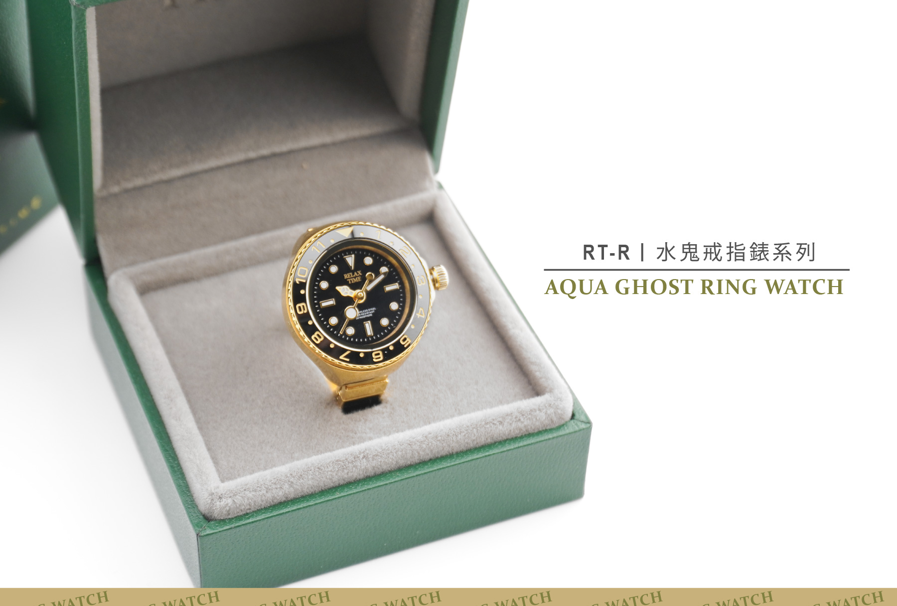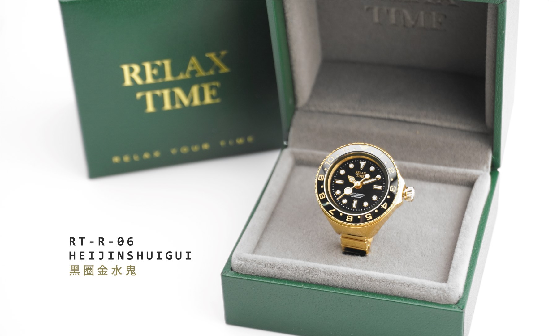 此為預購商品-RELAX TIME 水鬼戒指錶-黑圈金水鬼 (RT-R-06)