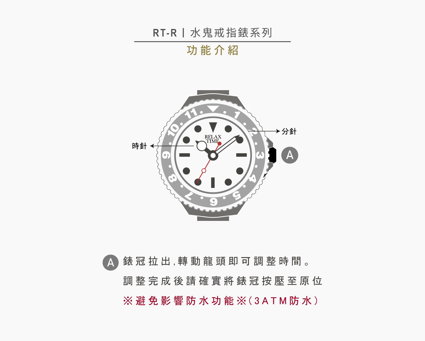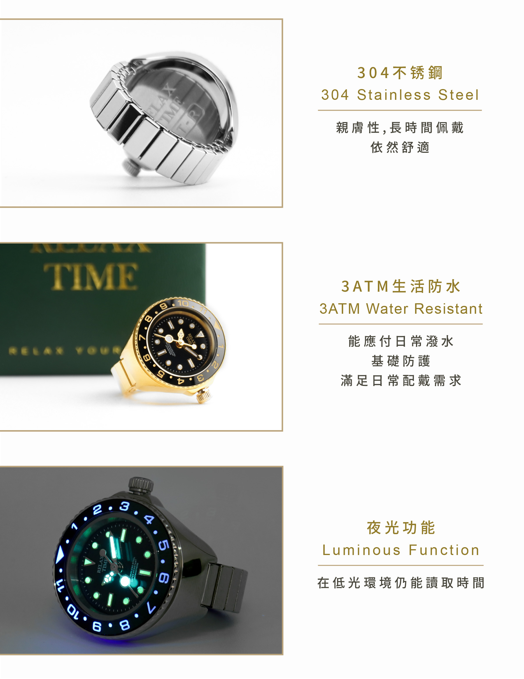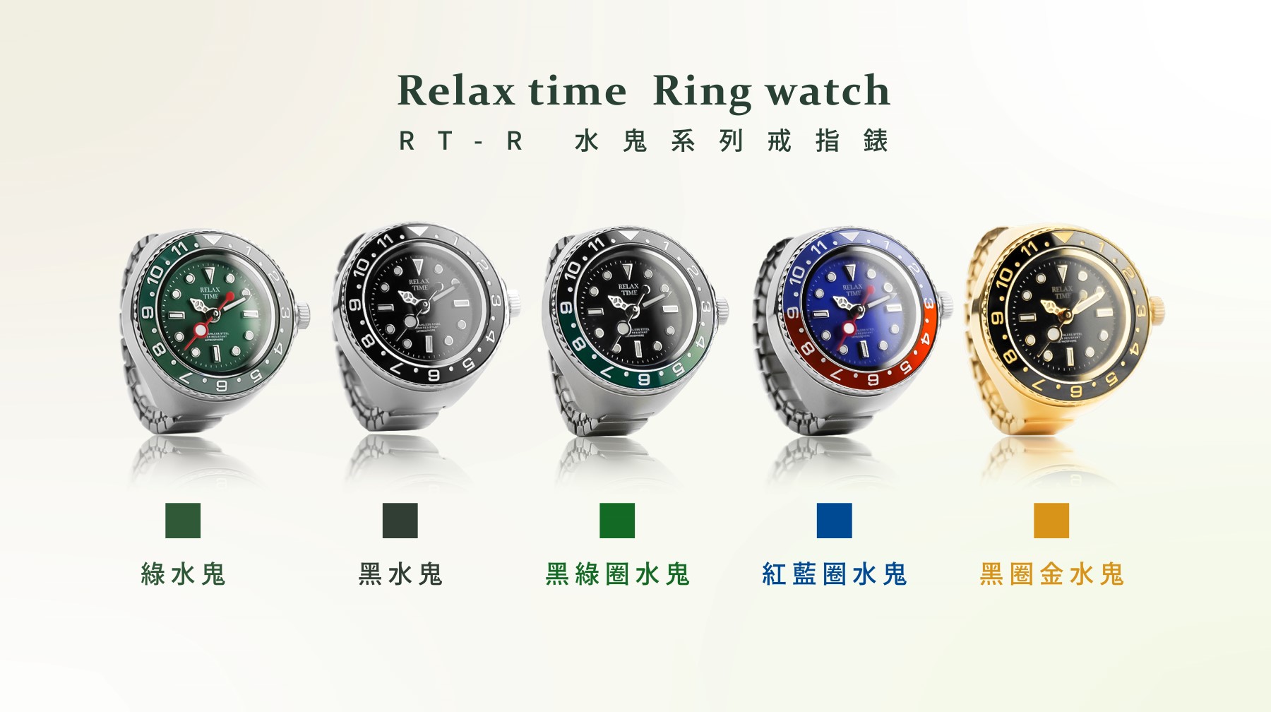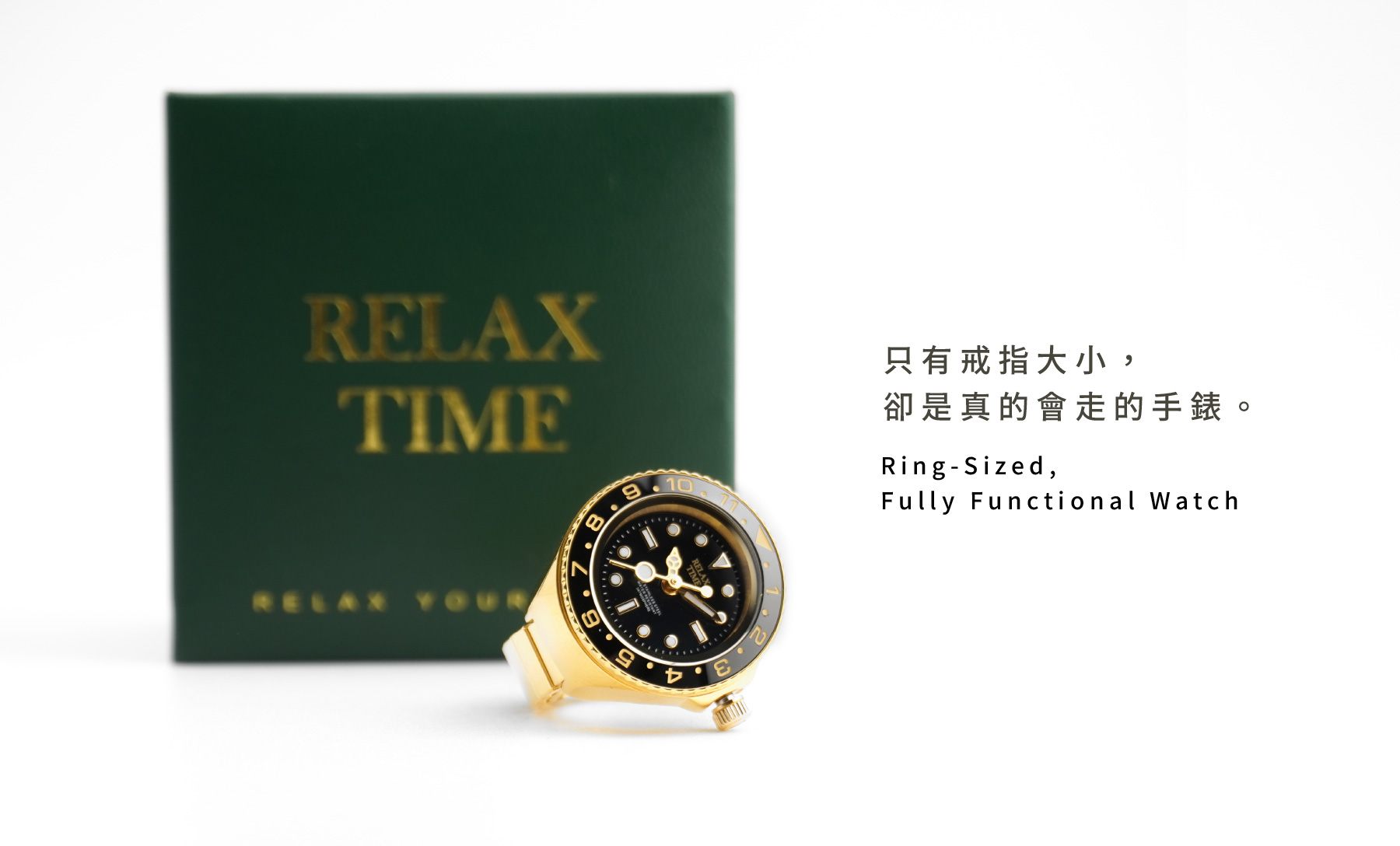此為預購商品-RELAX TIME 水鬼戒指錶-黑圈金水鬼 (RT-R-06)