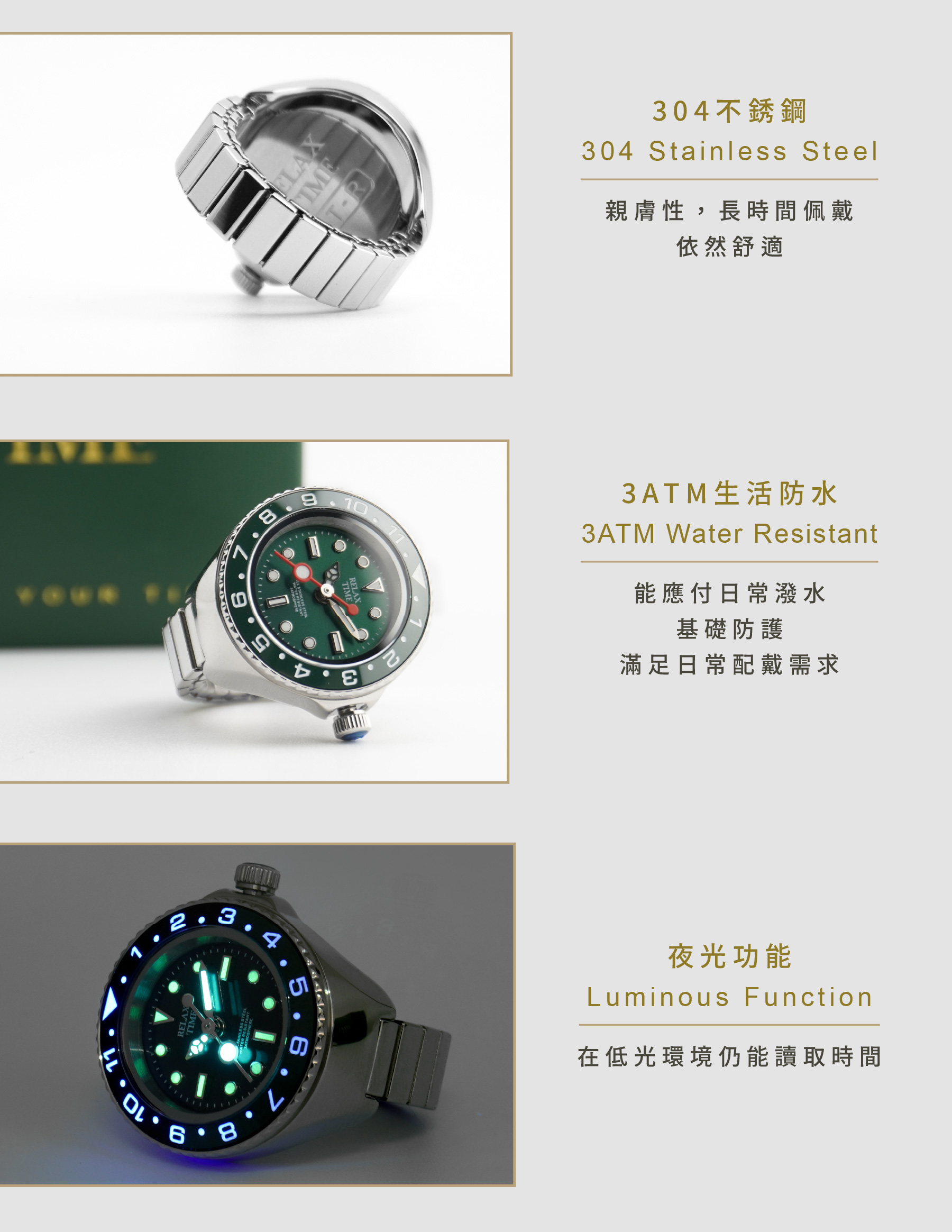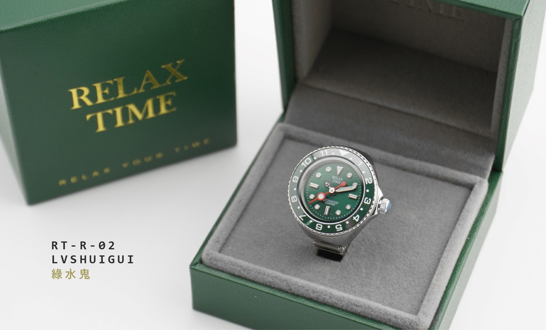 此為預購商品-RELAX TIME 水鬼戒指錶-綠水鬼 (RT-R-02)