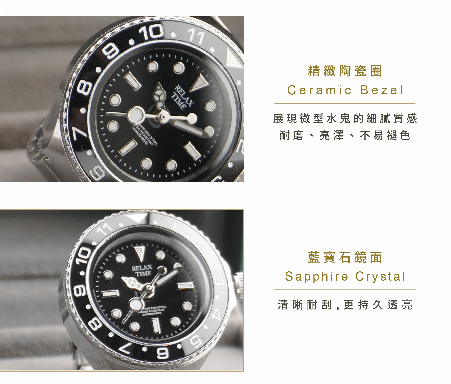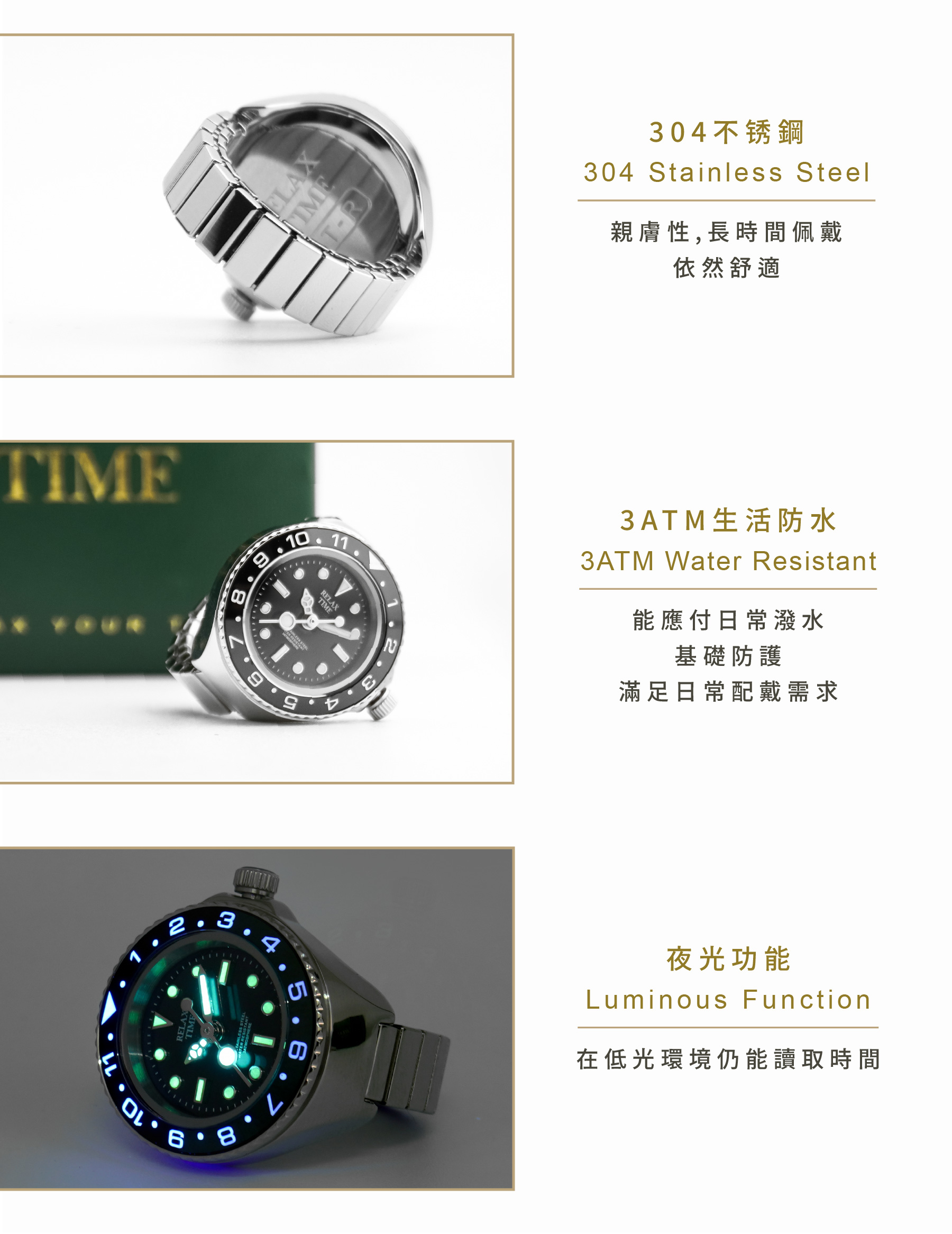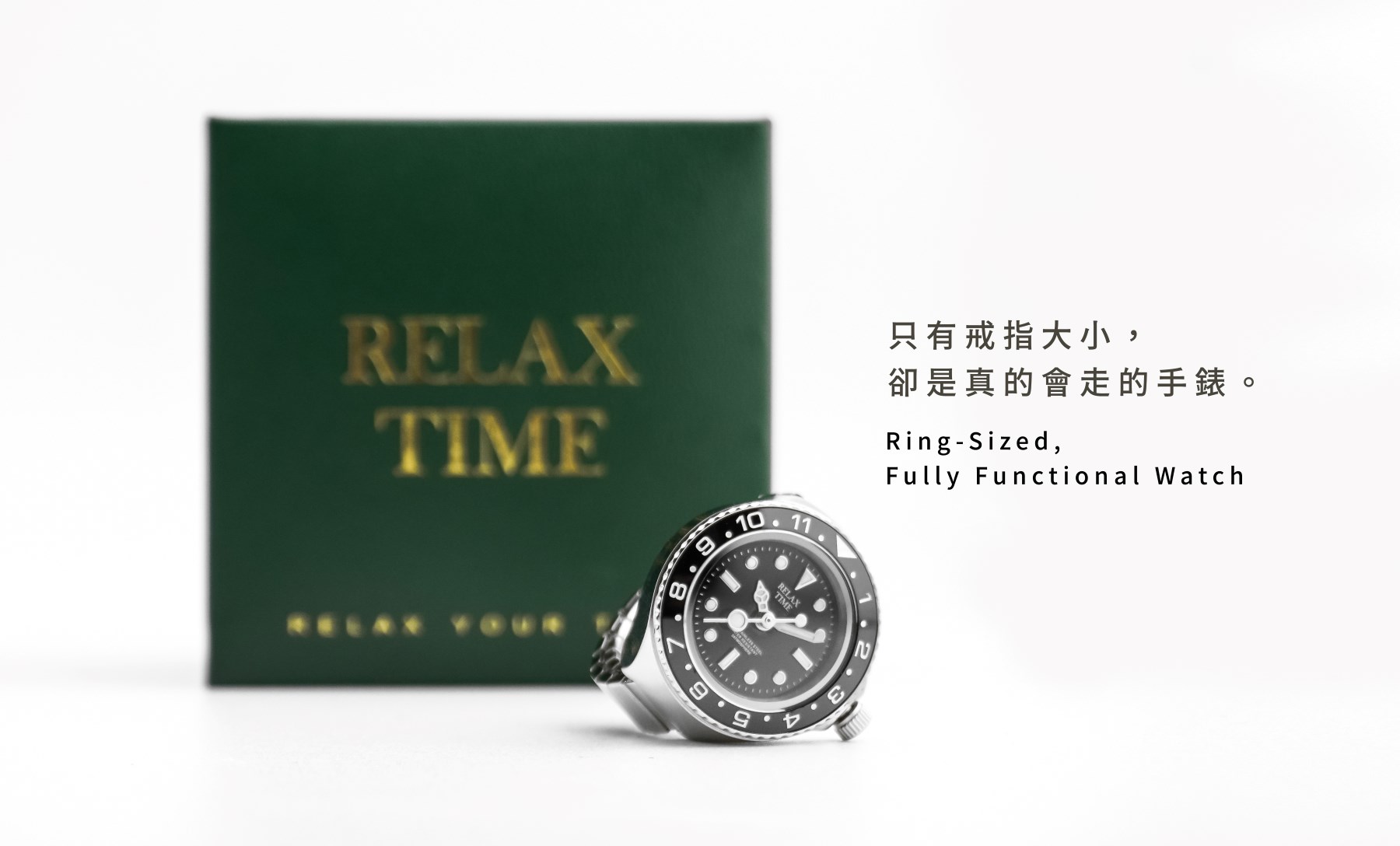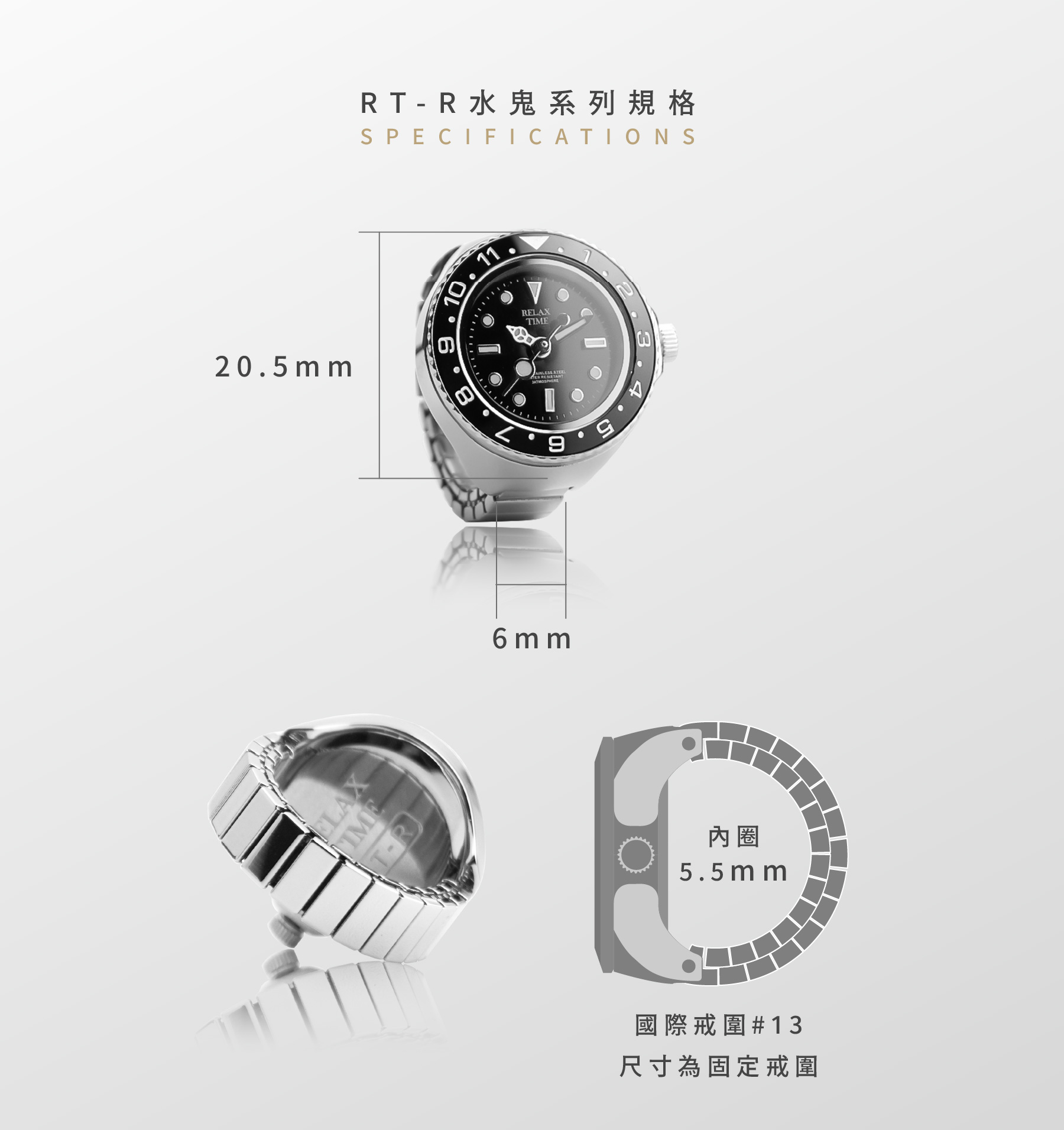 此為預購商品-RELAX TIME 水鬼戒指錶-黑水鬼 (RT-R-01)
