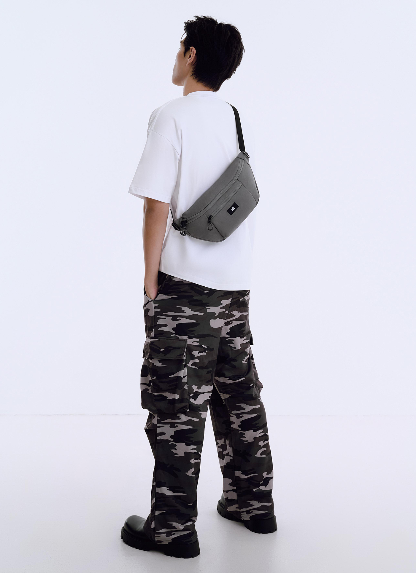 可放置長夾、6.7吋手機✔️經典休閒胸包,輕巧設計、質感防潑水布料男士支線雙R布標LOGO標誌 基本收納空間,輕鬆裝載外出物品背帶一體成型,可隨自身調整合適長度低調簡約,適合日常通勤或愛好輕便人士使用