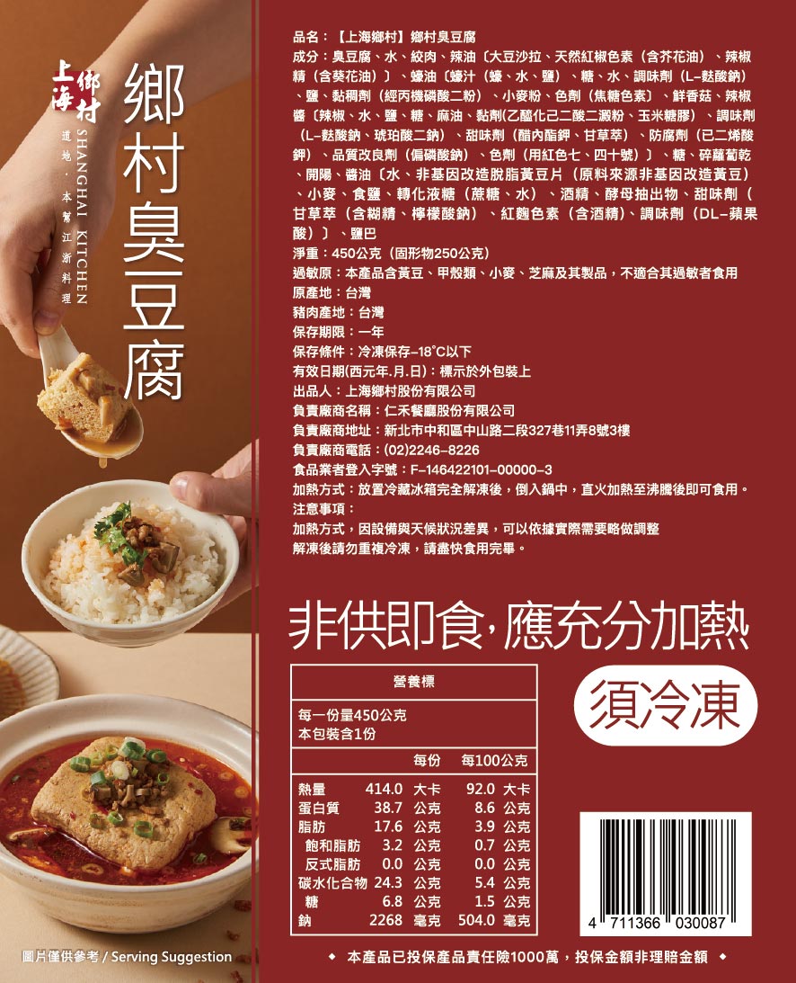 2.商品品名:【上海鄉村】鄉村臭豆腐(450g/固形物250g) x4包組