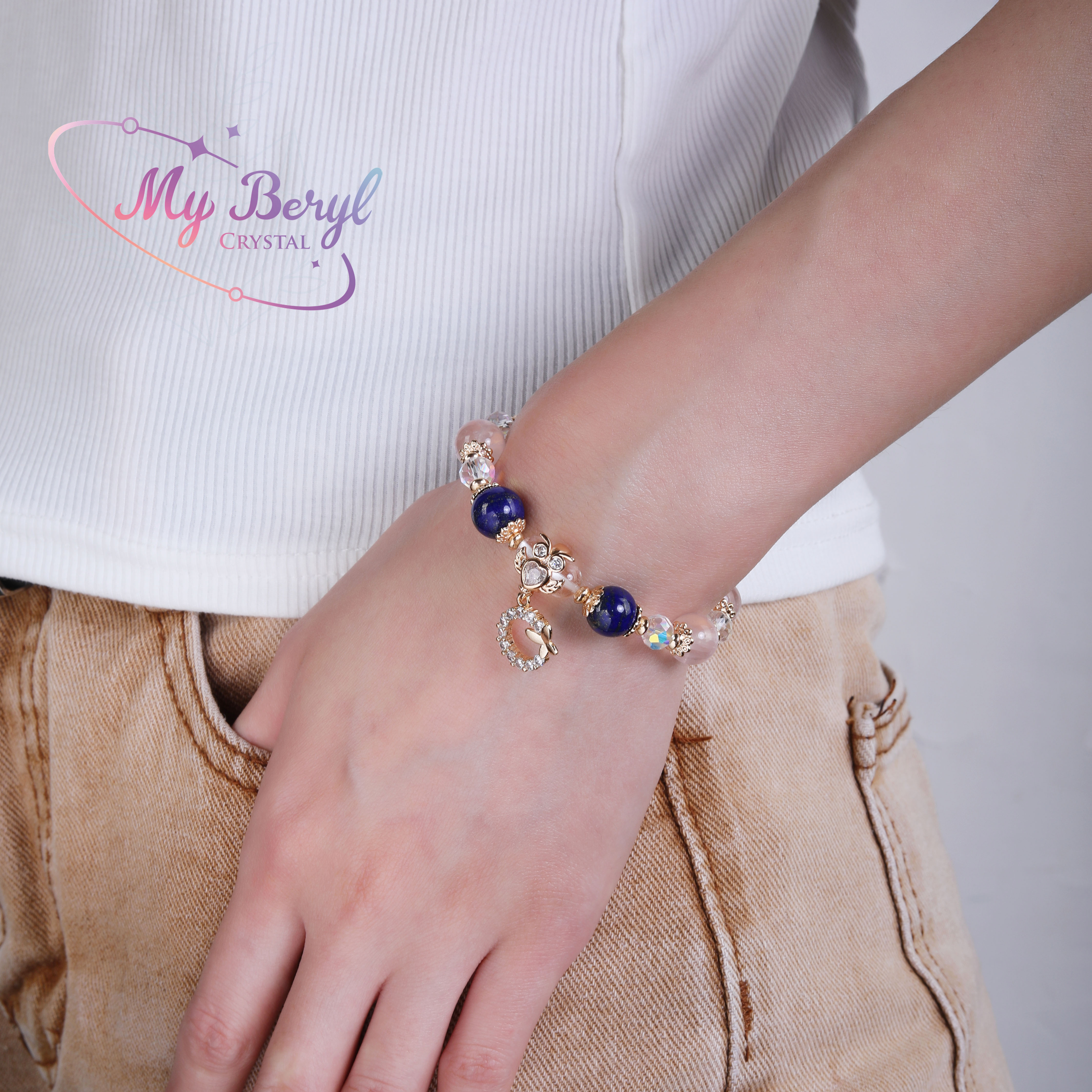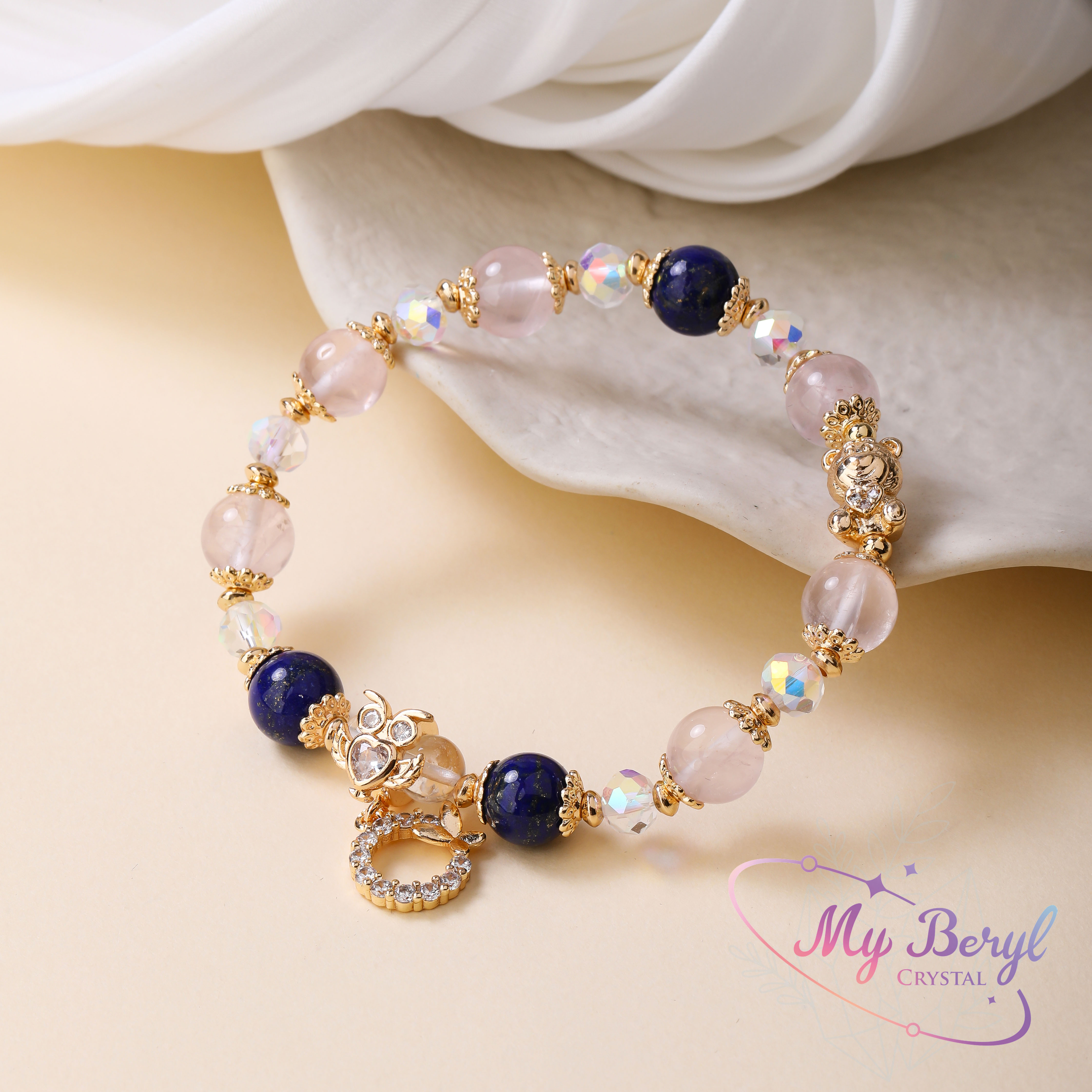 名稱:【My Beryl 水晶】青金石 × 粉晶 × 白水晶|智慧與愛的平衡手鍊